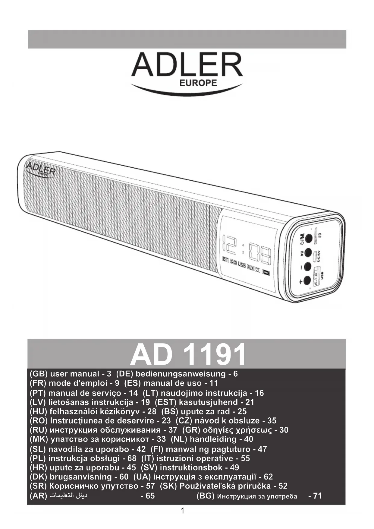 Retrouvez gratuitement la notice de l'appareil AD 1191 ADLER au format PDF.