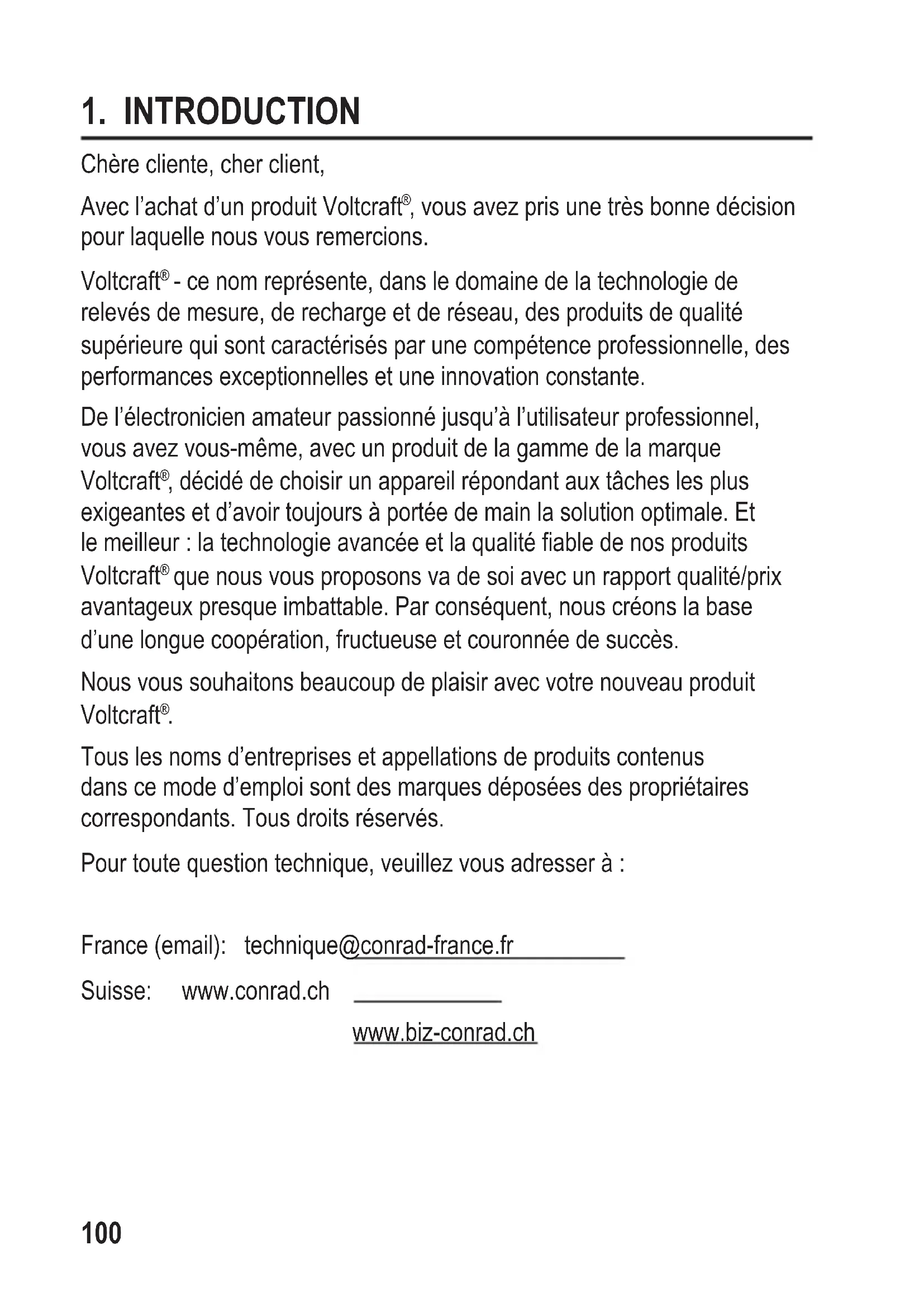 que nous vous proposons va de soi avec un rapport qualité/prix avantageux presque imbattable. Par conséquent, nous créons la base d’une longue coopération, fructueuse et couronnée de succès. Nous vous souhaitons beaucoup de plaisir avec votre nouveau produit Voltcraft