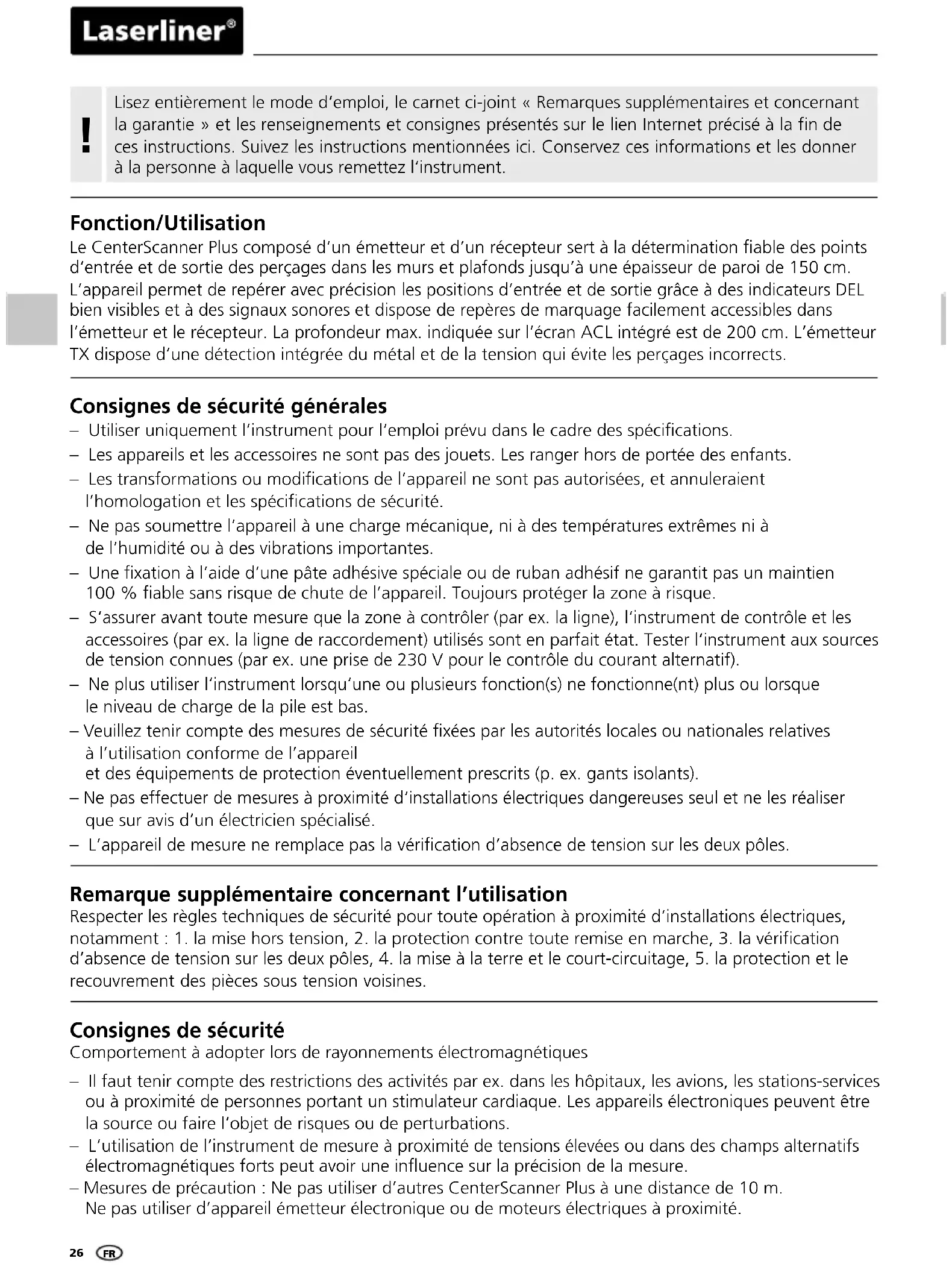 MODE D'EMPLOI CenterScanner Plus Laserliner