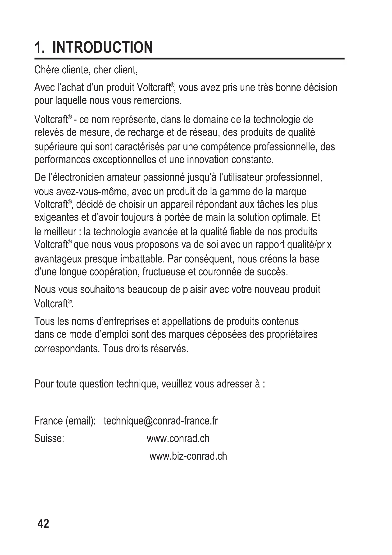 Avec l'achat d'un produit Voltcraft®, vous avez pris une très bonne décision pour laquelle nous vous remercions.