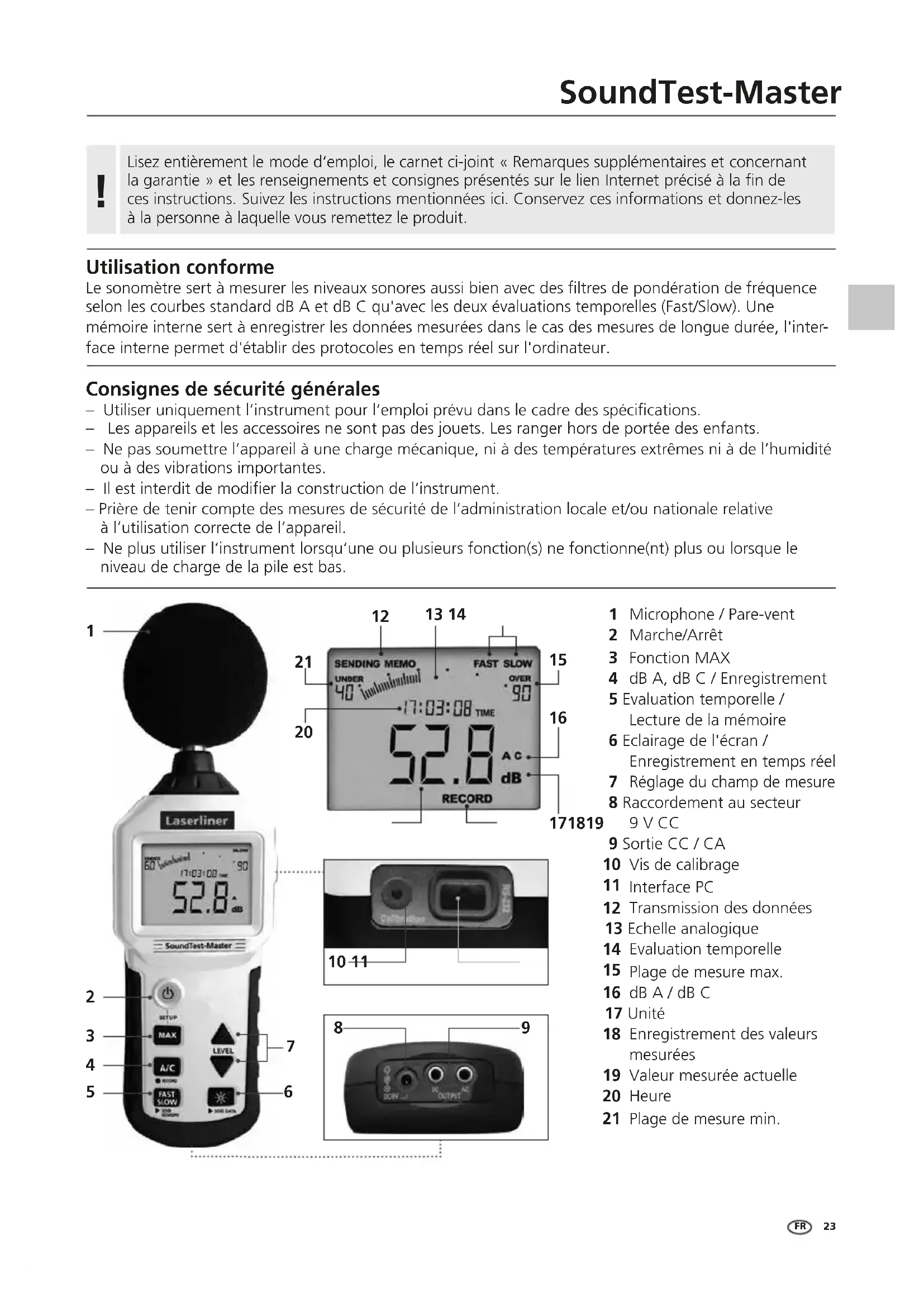 Retrouvez gratuitement la notice de l'appareil SoundTestMaster Laserliner au format PDF.