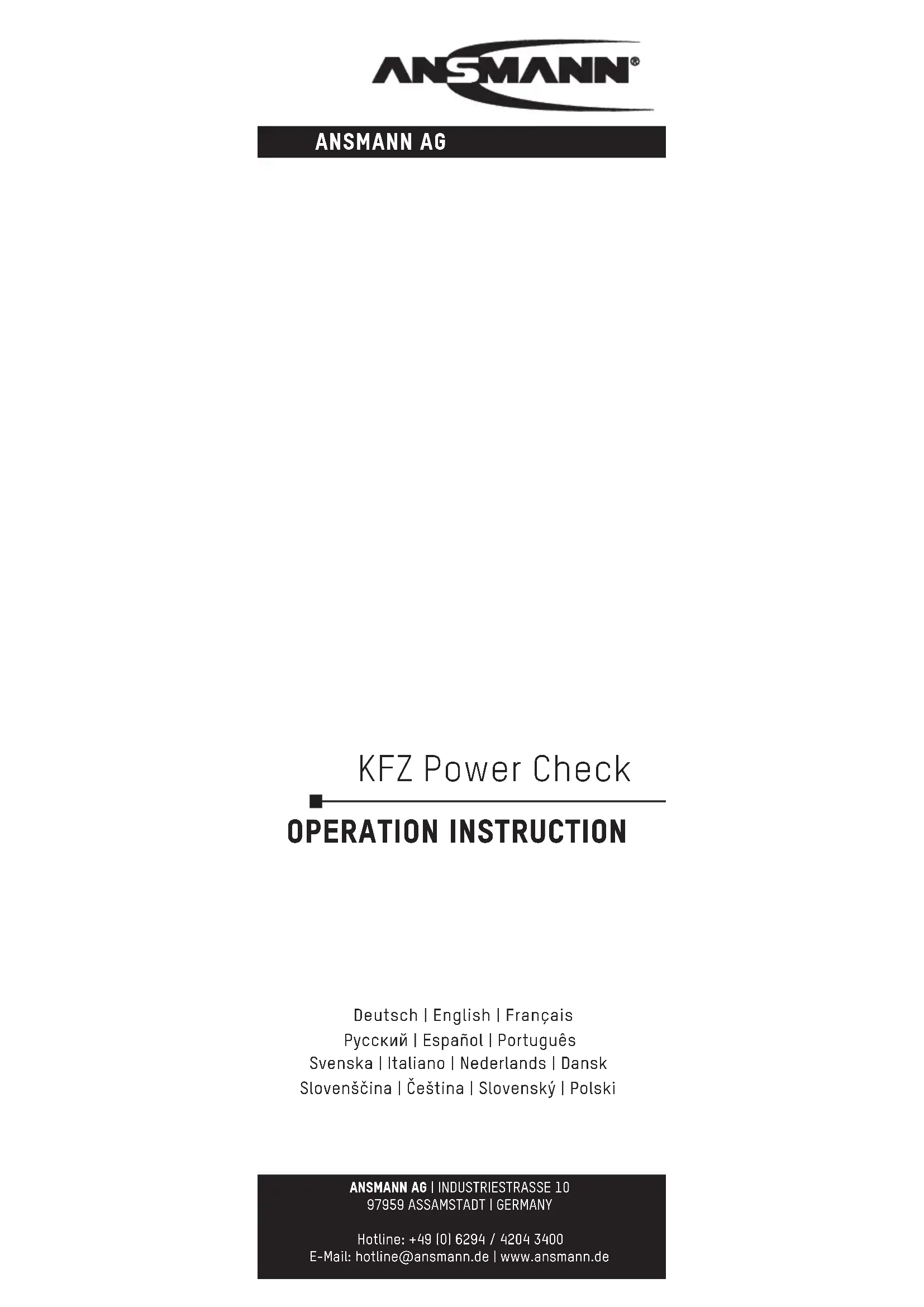 Retrouvez gratuitement la notice de l'appareil KFZ Power Check ANSMANN au format PDF.