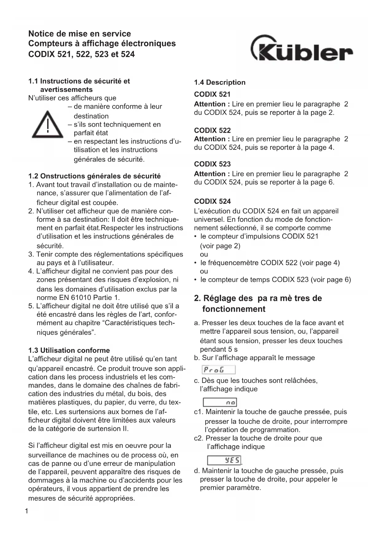 Retrouvez gratuitement la notice de l'appareil Codix 523 Kübler au format PDF.