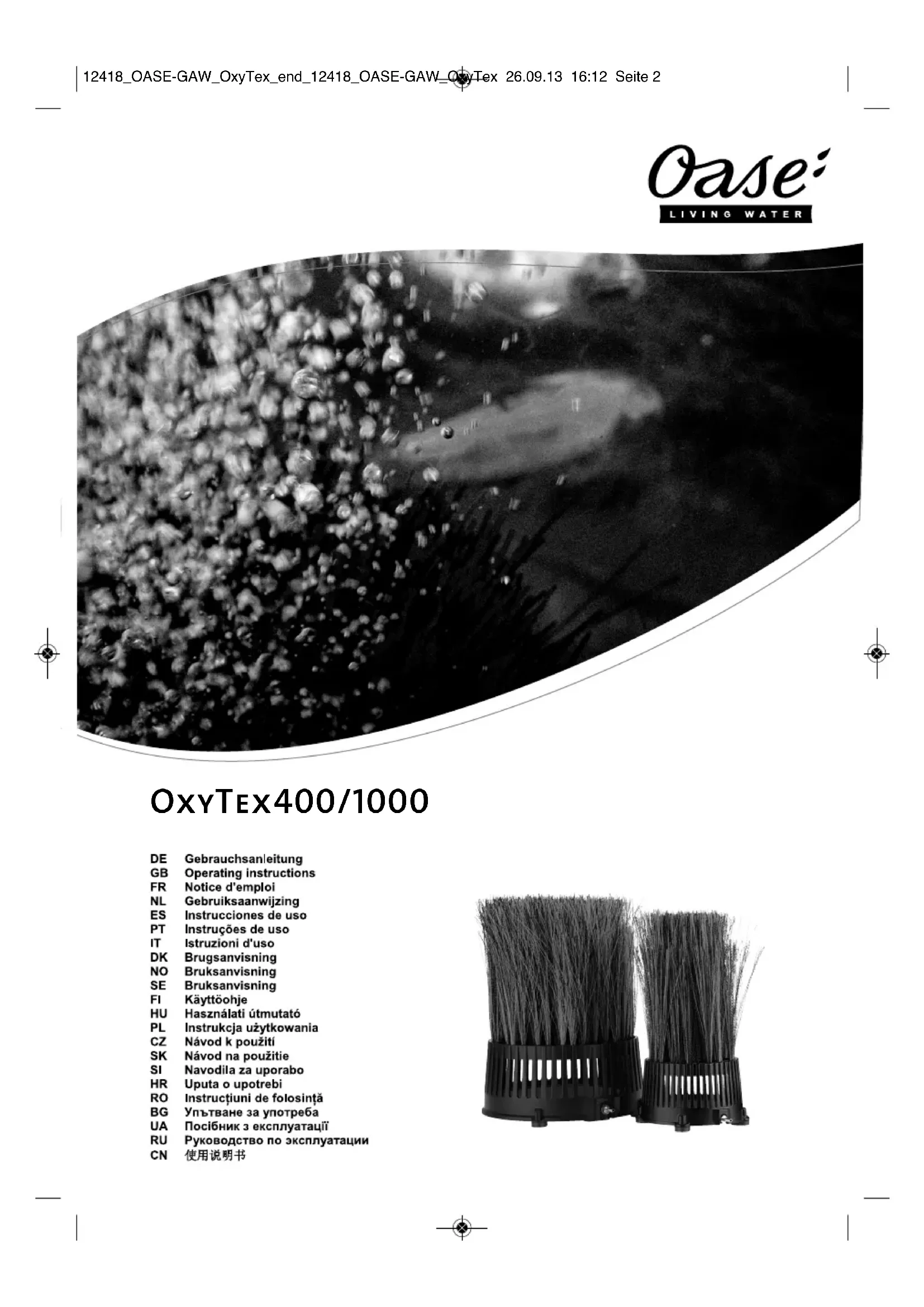 Retrouvez gratuitement la notice de l'appareil OxyTex Set 500 OASE au format PDF.