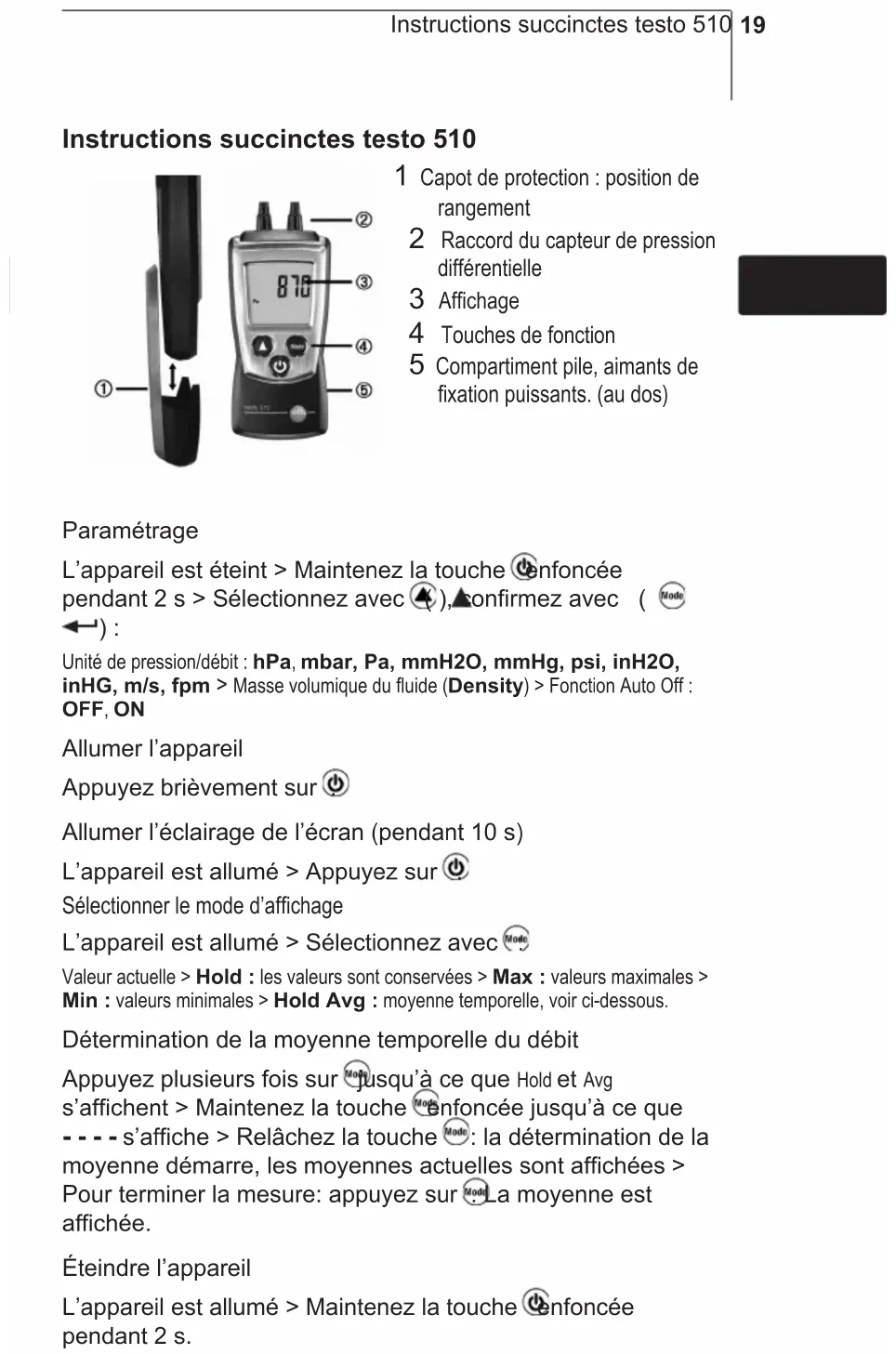 510 - équipements de mesure Testo - Notice d'utilisation et mode d'emploi gratuit