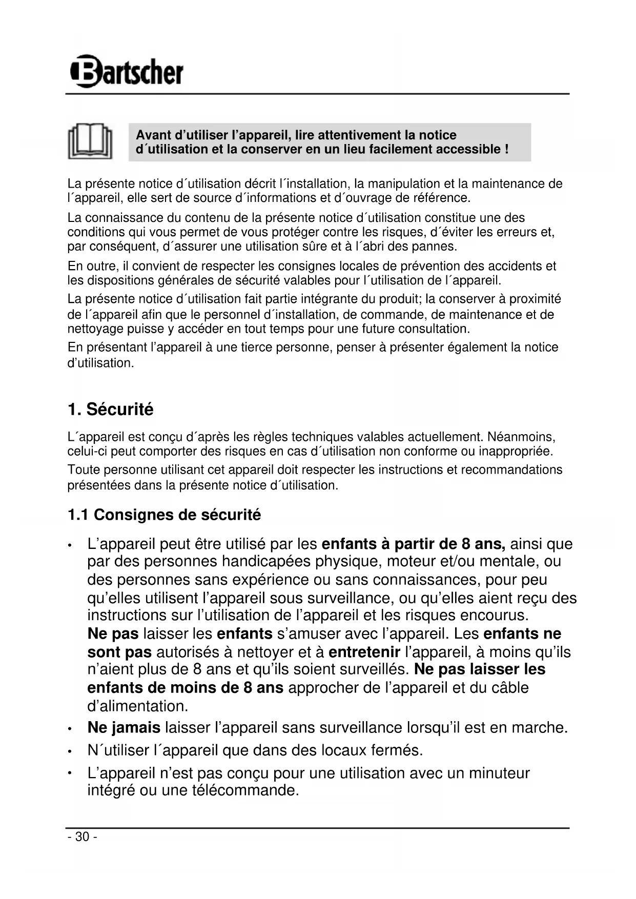 Retrouvez gratuitement la notice de l'appareil IF91 BARTSCHER au format PDF.