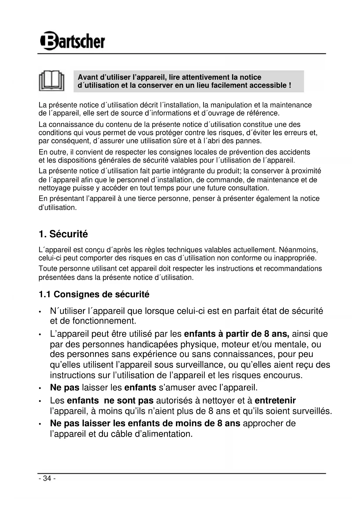 Retrouvez gratuitement la notice de l'appareil 200069 BARTSCHER au format PDF.