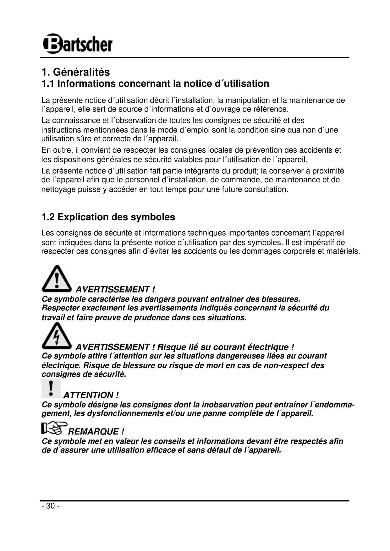 1.1 Informations concernant la notice d´utilisation