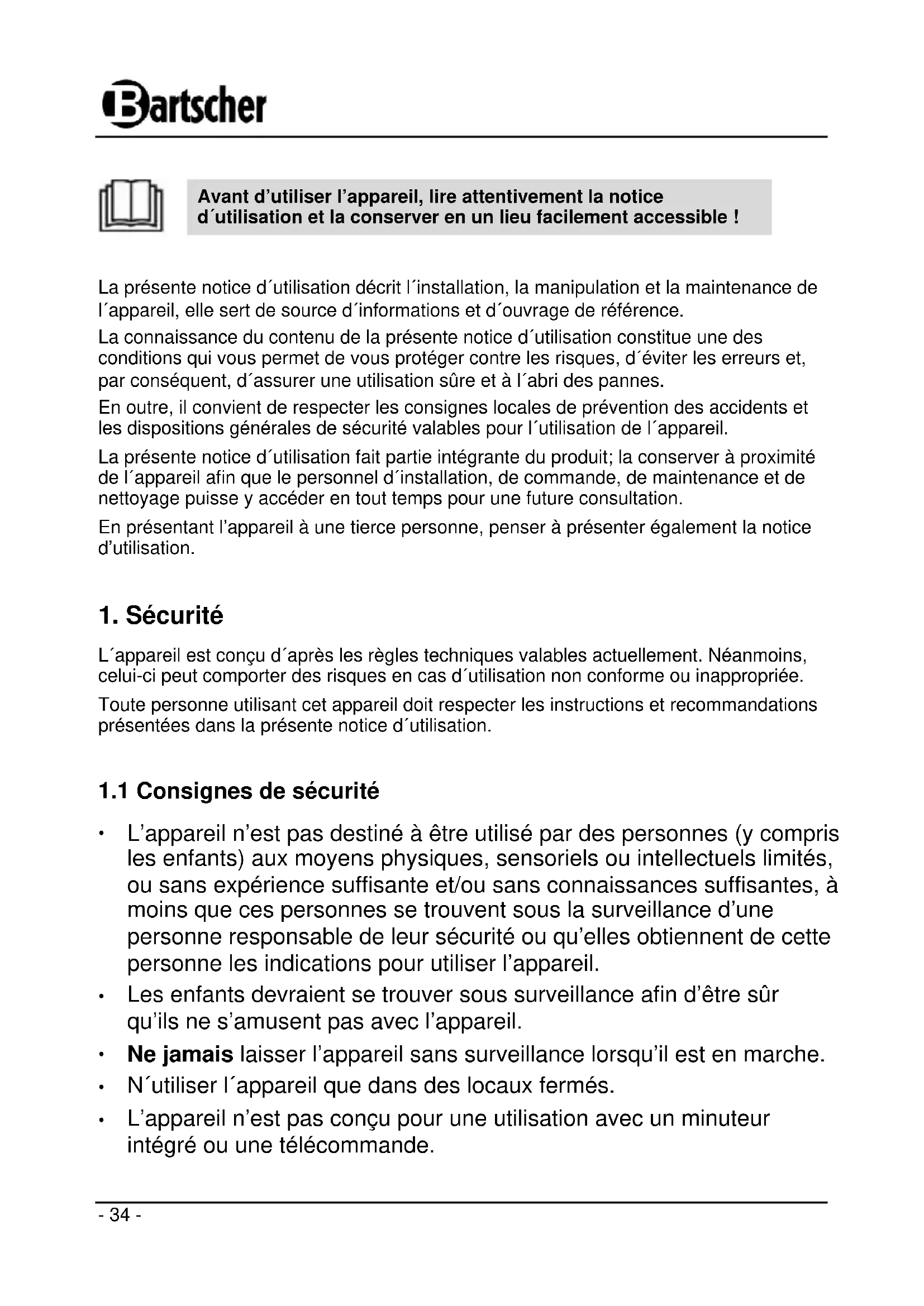 Retrouvez gratuitement la notice de l'appareil 1KA10 BARTSCHER au format PDF.