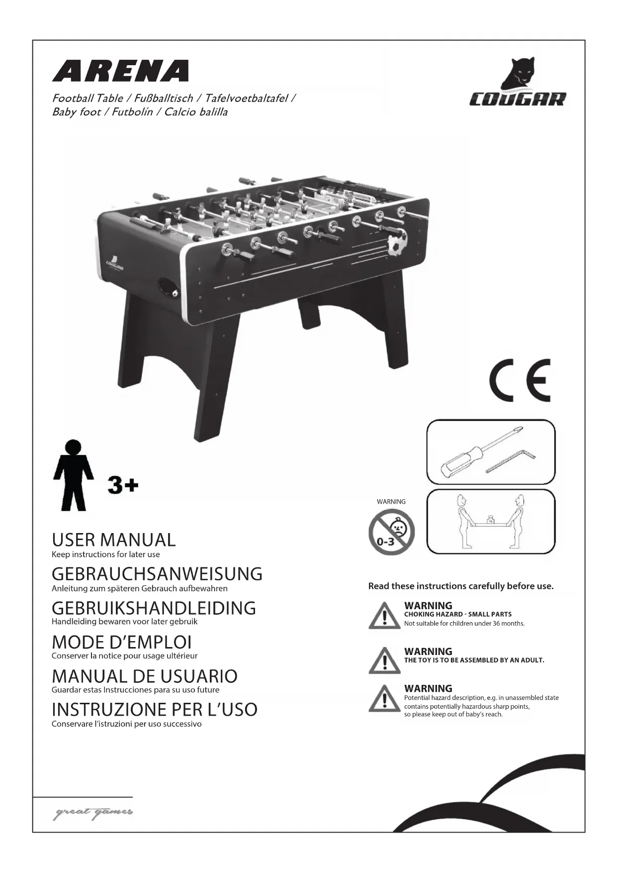 Arena - Baby-foot Cougar - Notice d'utilisation et mode d'emploi gratuit