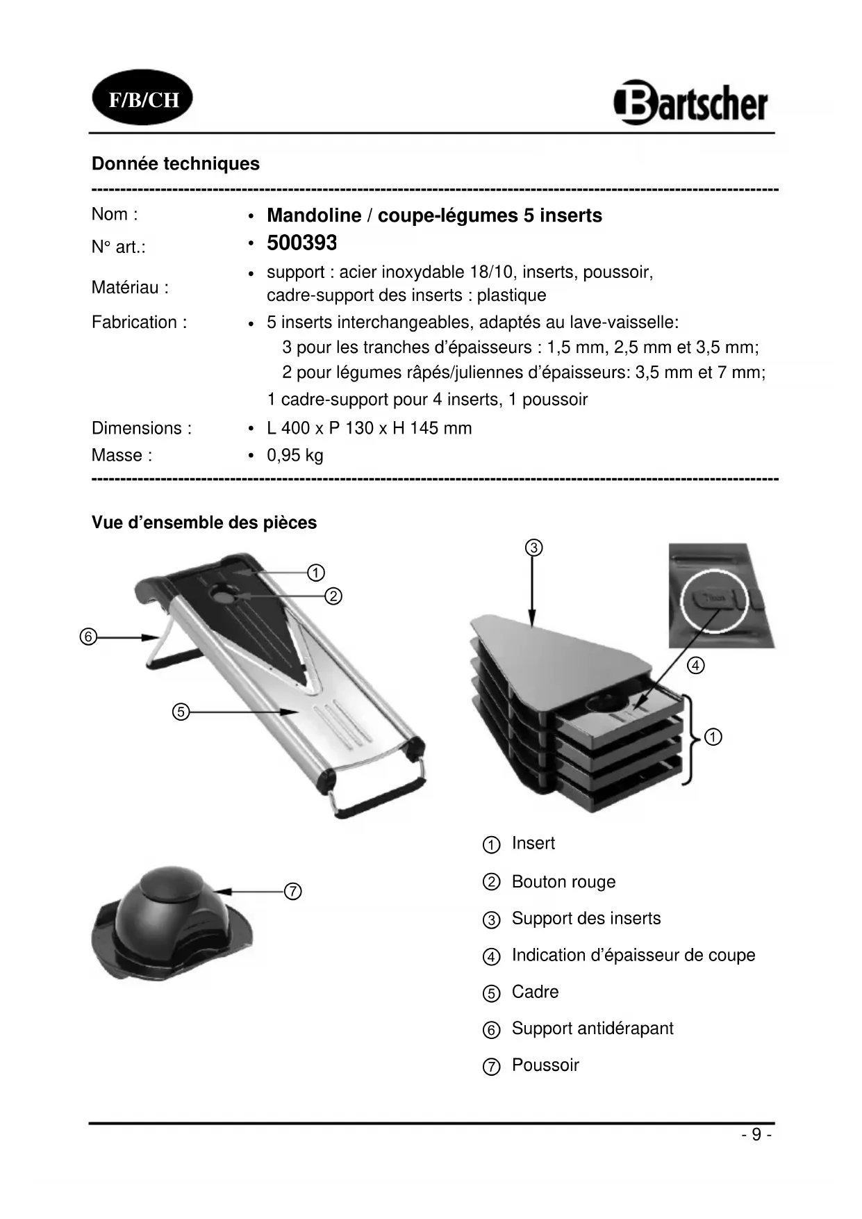 MODE D'EMPLOI 500393 BARTSCHER