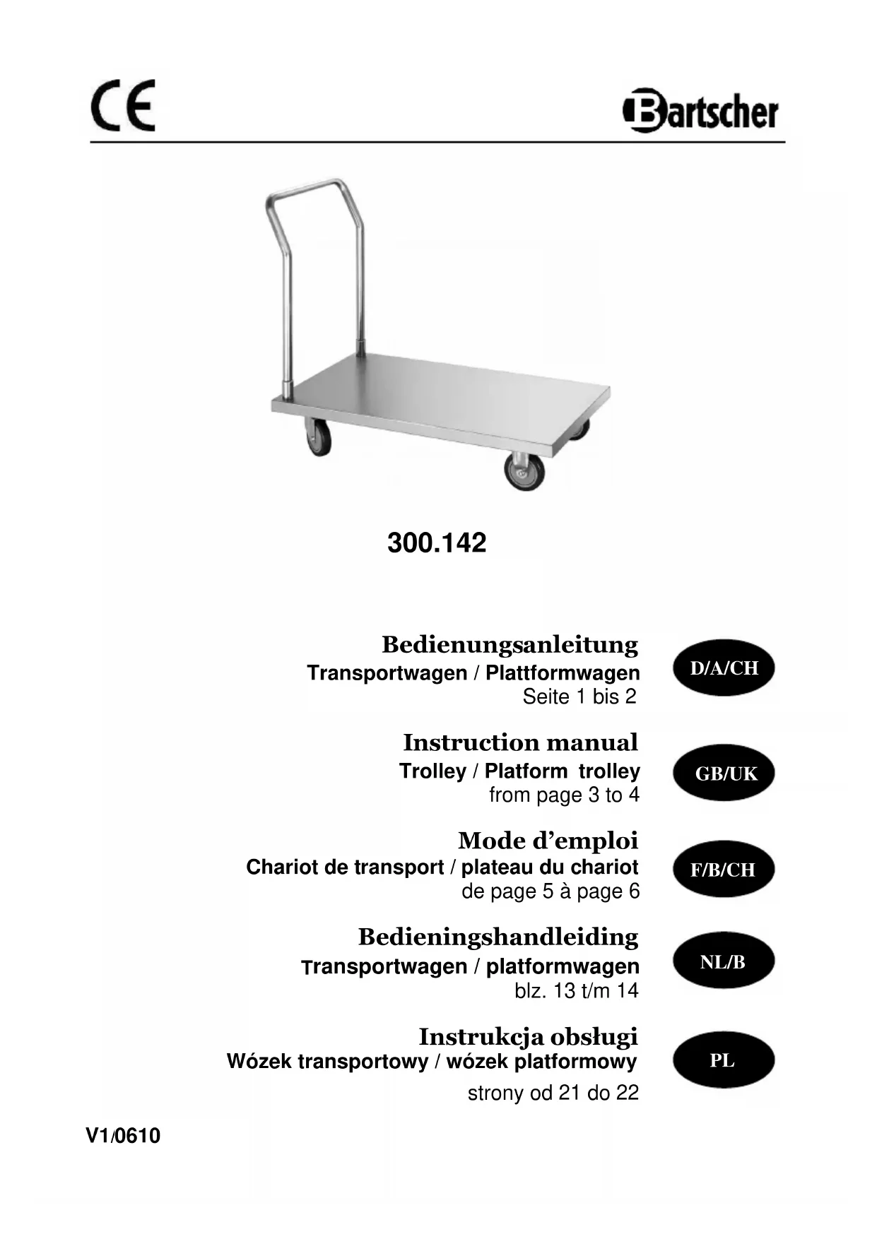 TP100 - Chariot de transport BARTSCHER - Notice d'utilisation et mode d'emploi gratuit