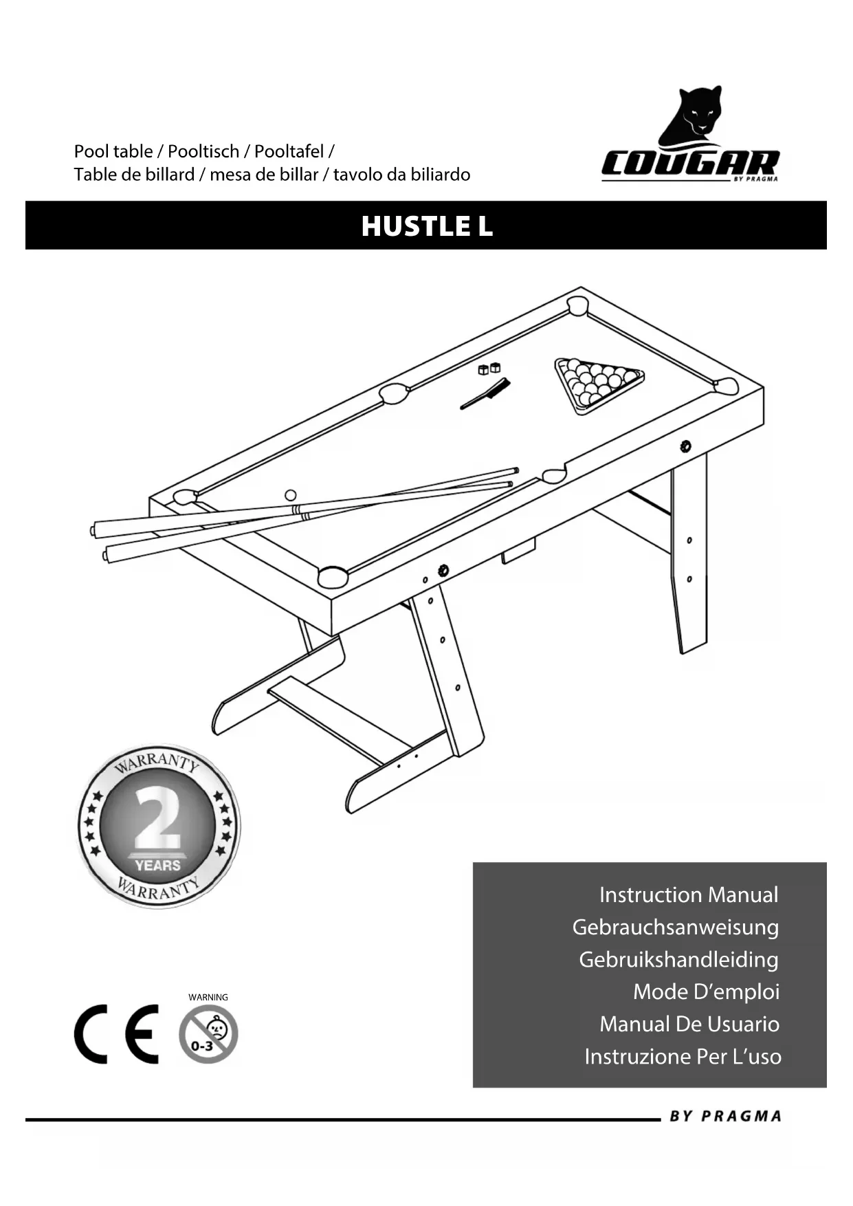 Hustle L - Table de billard Cougar - Notice d'utilisation et mode d'emploi gratuit