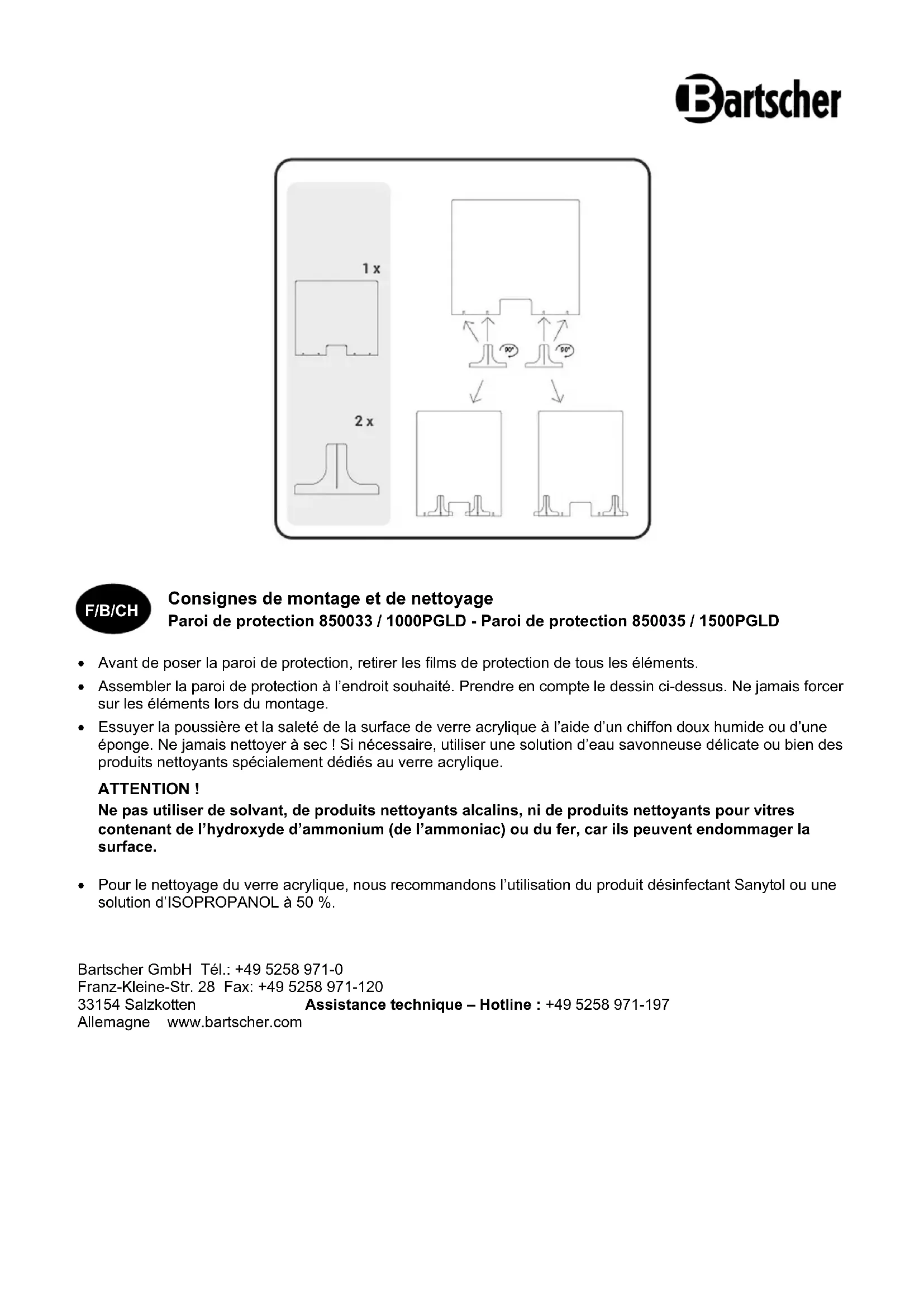 1000PGLD - Paroi de protection BARTSCHER - Notice d'utilisation et mode d'emploi gratuit