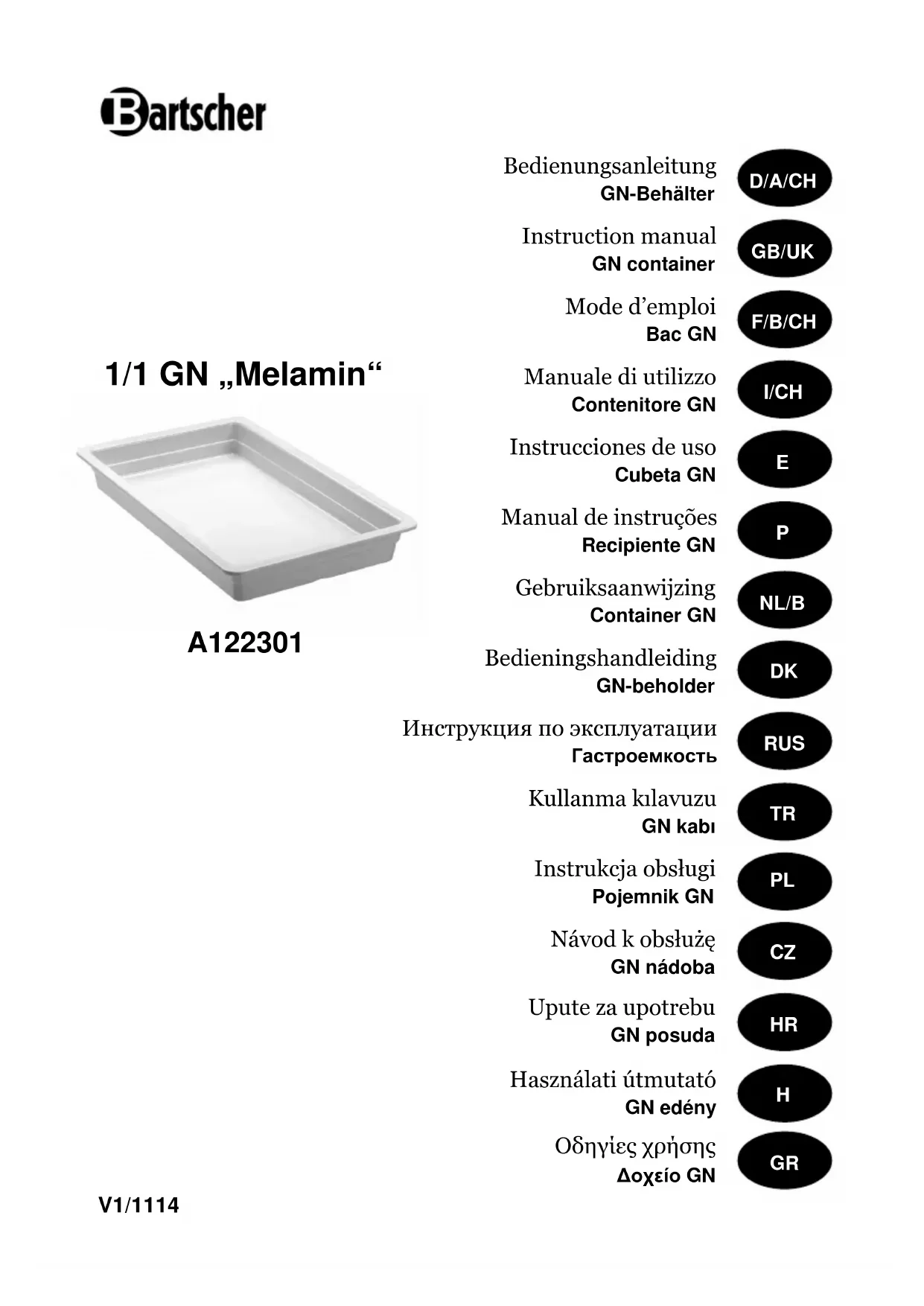 A122301 - Récipient de cuisine BARTSCHER - Notice d'utilisation et mode d'emploi gratuit