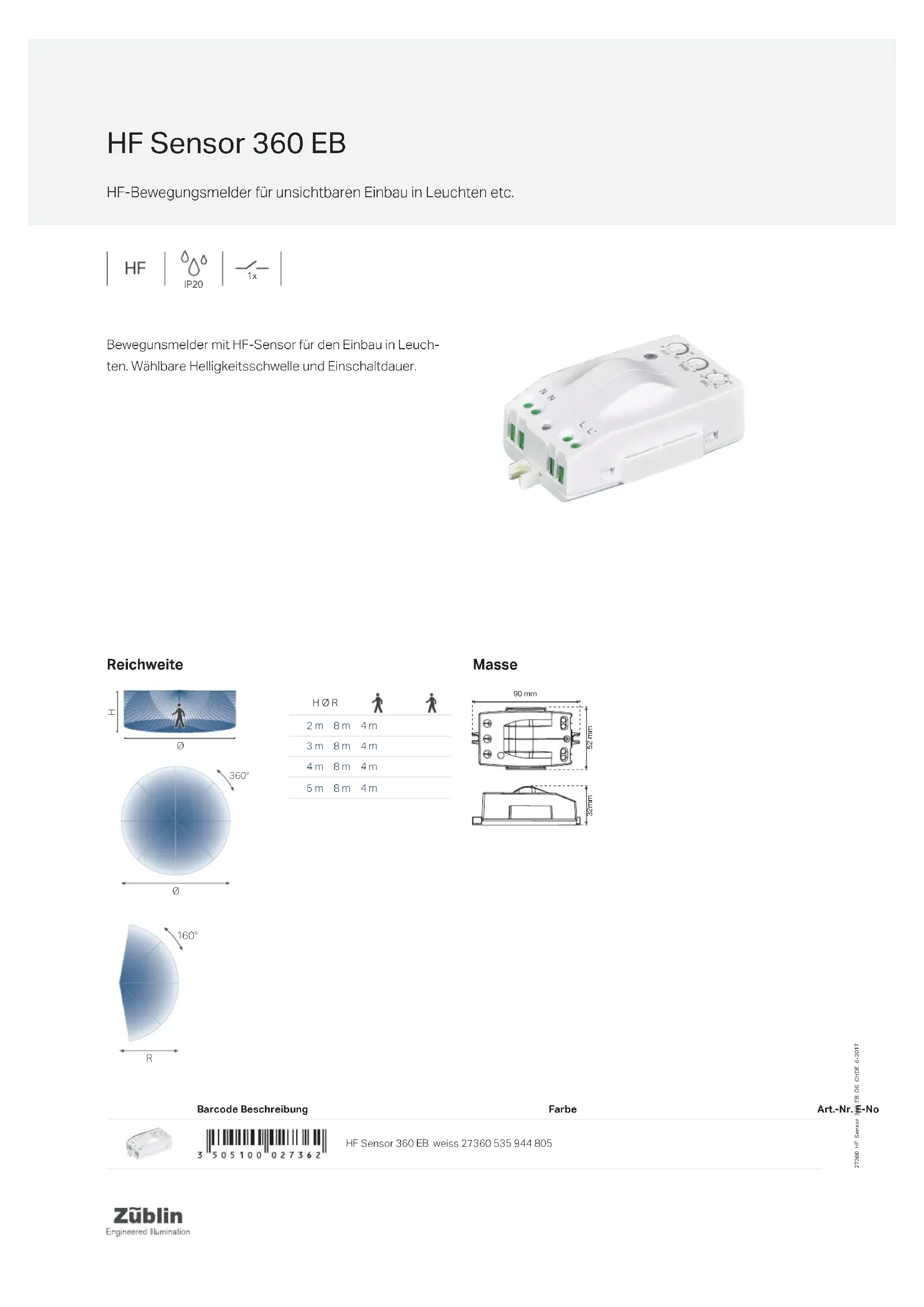 Retrouvez gratuitement la notice de l'appareil HF Sensor 360 EB Niko au format PDF.