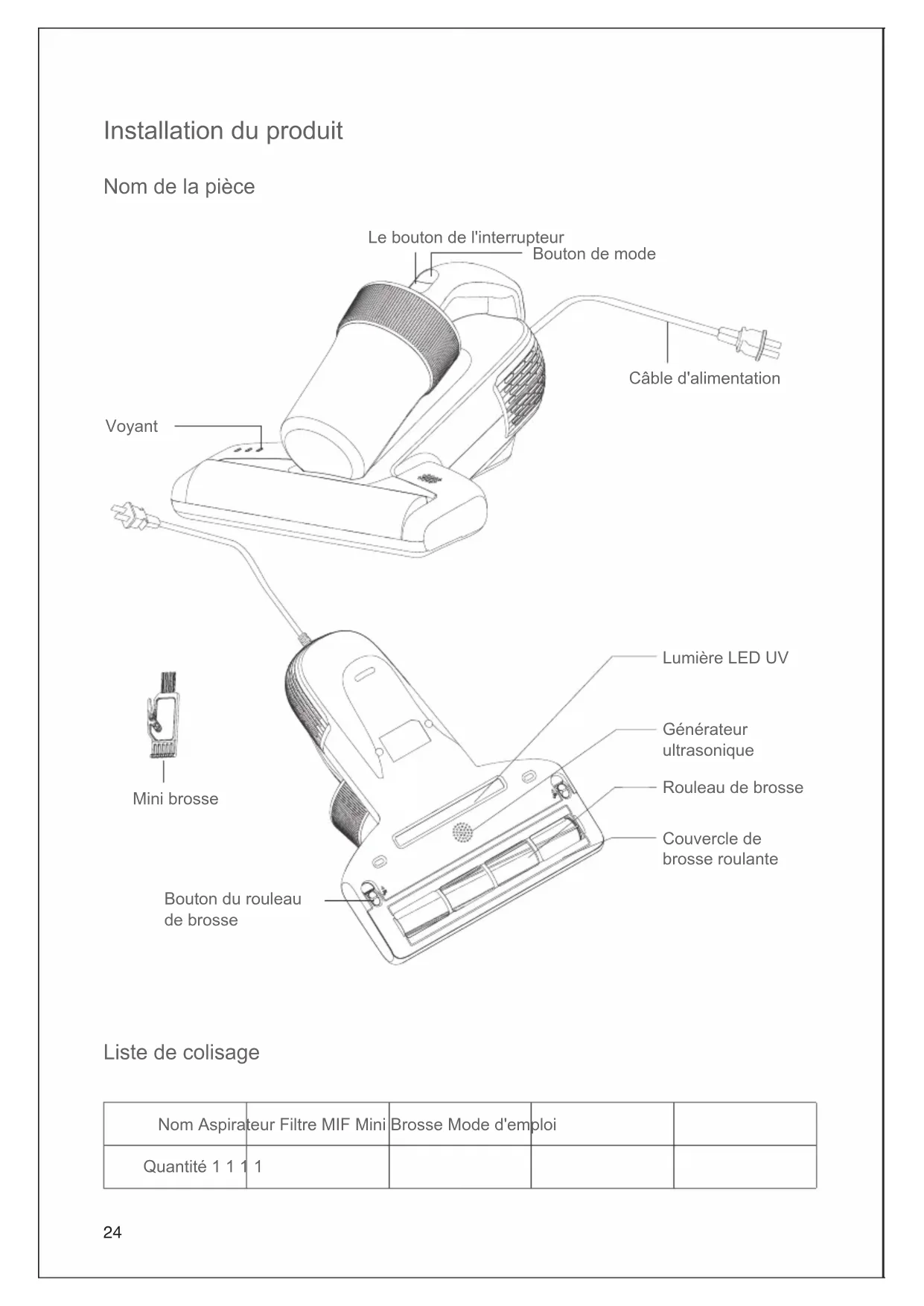 | Caractéristiques Techniques | Aspirateur à main avec fonction antimite UV |