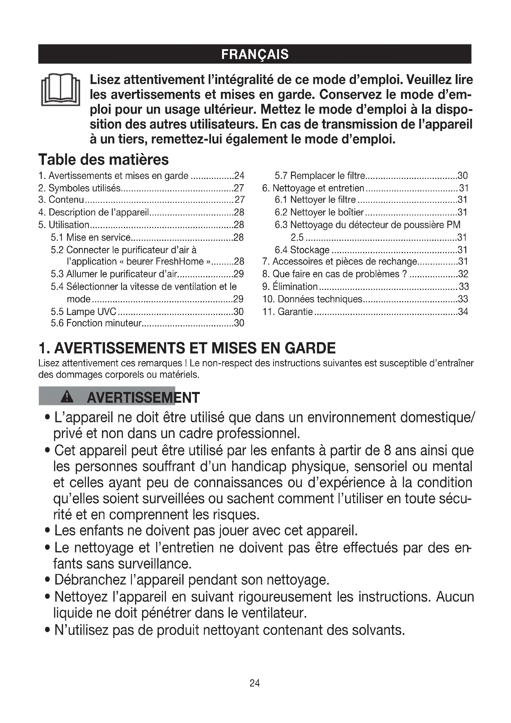1. Avertissements et mises en garde .................24