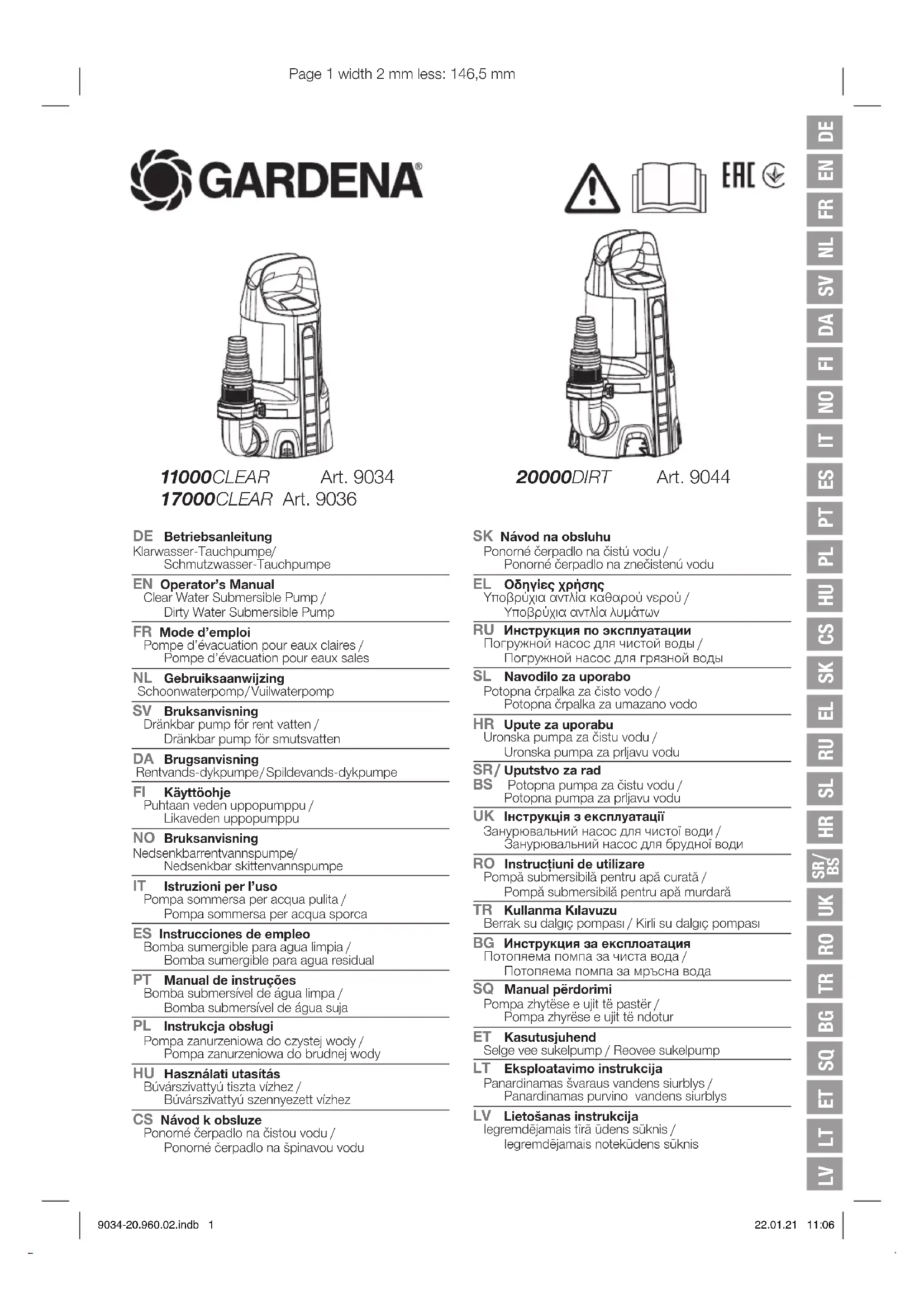 Retrouvez gratuitement la notice de l'appareil 20000 Aquasensor GARDENA au format PDF.