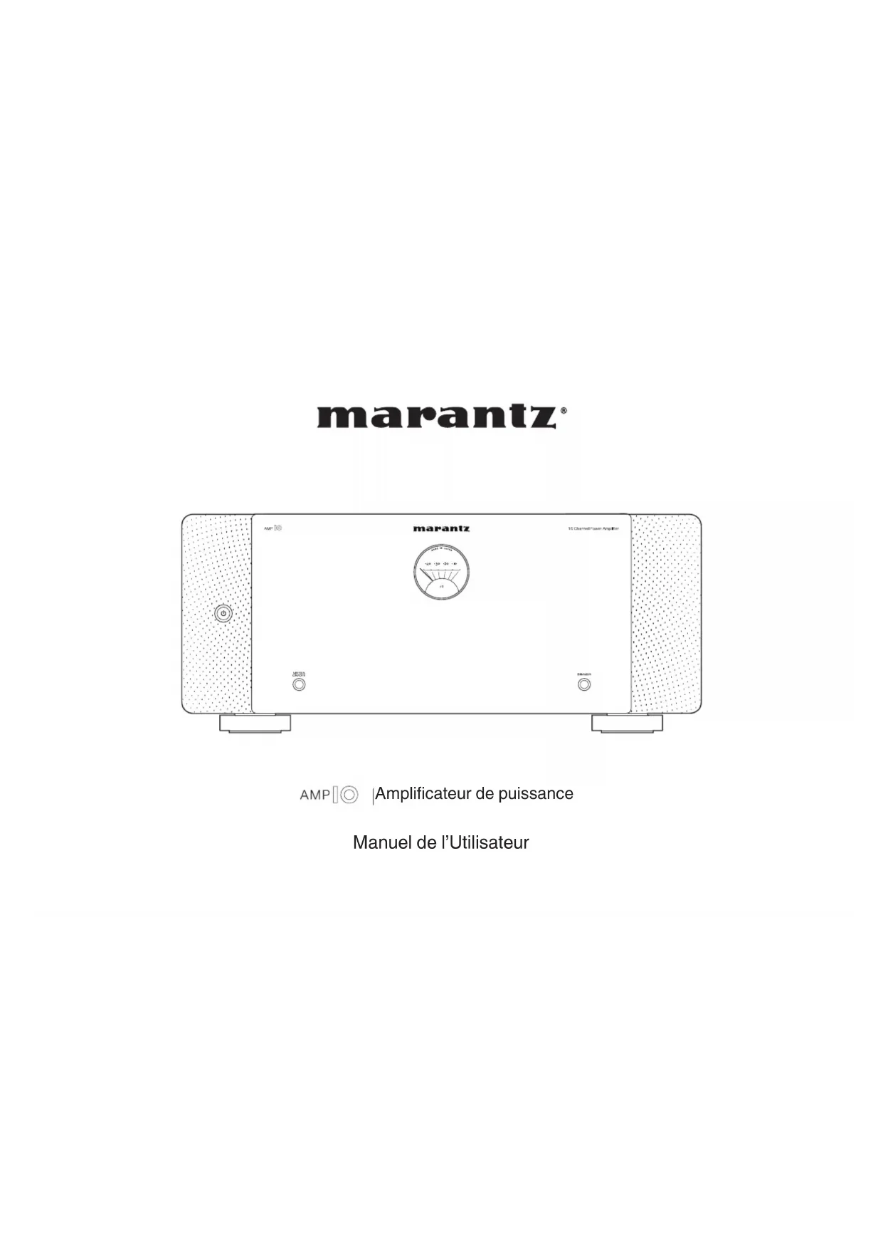 Panneau avant Panneau arrière IndexNous vous remercions d’avoir acquis cet appareil Marantz. Afin d’assurer son bon fonctionnement, veuillez lire attentivement ce manuel de l’utilisateur avant d’utiliser l’appareil. Après avoir lu le manuel, veuillez le conserver pour toute référence future. Accessories Assurez-vous que les articles suivants sont fournis avec l’appareil. Câble du connecteur de la télécommande Instructions de sécuritéGuide de démarrage rapide Câble du connecteur de contrôle AMP Cordon d’alimentation Clé pour bornes d’enceinte Contents Connexions Lecture Conseils Annexe Spécifications