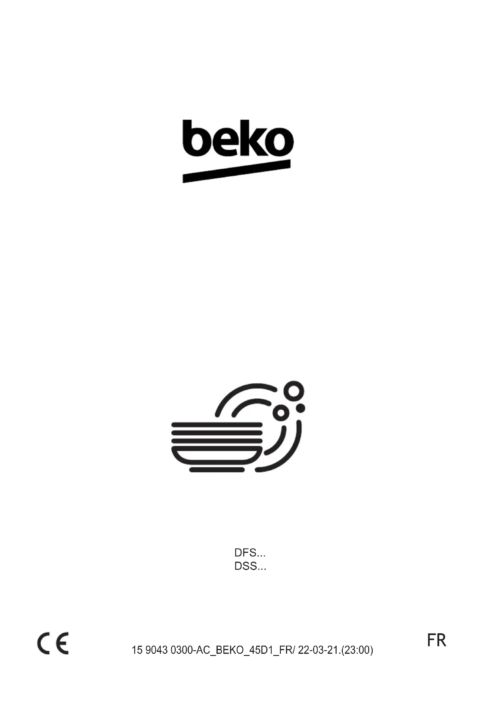 - DSS 9043 0300-AC_BEKO_45D1_FR/ 22-03-21.(23:00)Les symboles suivants sont utilisés dans le manuel d’utilisation et sur l’emballage : Danger pouvant entraîner des blessures voire la mort. AVIS Danger pouvant entraîner des dommages au produit ou à son environnement. Informations importantes ou conseils utiles pour l’utilisation Veuillez lire ce manuel d’utilisateur. Cher client, Veuillez lire le présent manuel d’utilisation avant d’utiliser le produit. Merci d’avoir choisi ce produit Beko. Nous espérons que vous obtiendrez les meilleurs résultats avec notre produit fabriqué à partir d’une technologie de pointe et de matériaux de qualité supérieure. C’est pourquoi nous vous recommandons, avant d’utiliser ce produit, de lire attentivement ce manuel et tous les autres documents fournis. Veillez à bien respecter les consignes et les instructions figurant dans le manuel d’utilisation. Ainsi, vous pouvez vous protéger et protéger votre produit contre les dangers potentiels. Veuillez conserver ce manuel d’utilisateur. Si vous confiez le produit à quelqu’un d’autre, n’oubliez pas de lui remettre également le manuel d’utilisation. Ce produit a été fabriqué conformément aux conditions écologiques les plus récentes.TABLE DES MATIÈRES p. 15