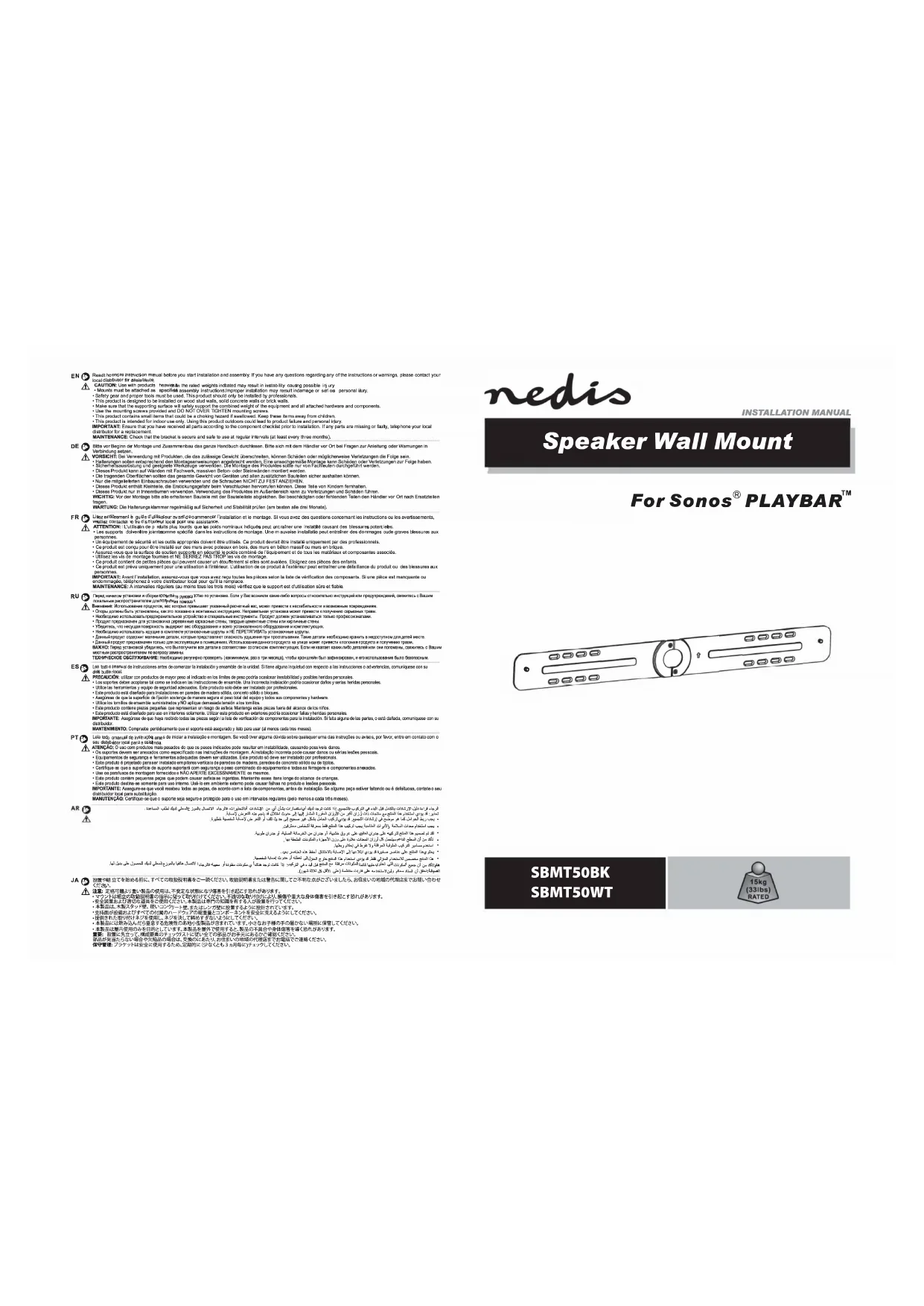 SBMT50WT - Support des enceintes NEDIS - Notice d'utilisation et mode d'emploi gratuit