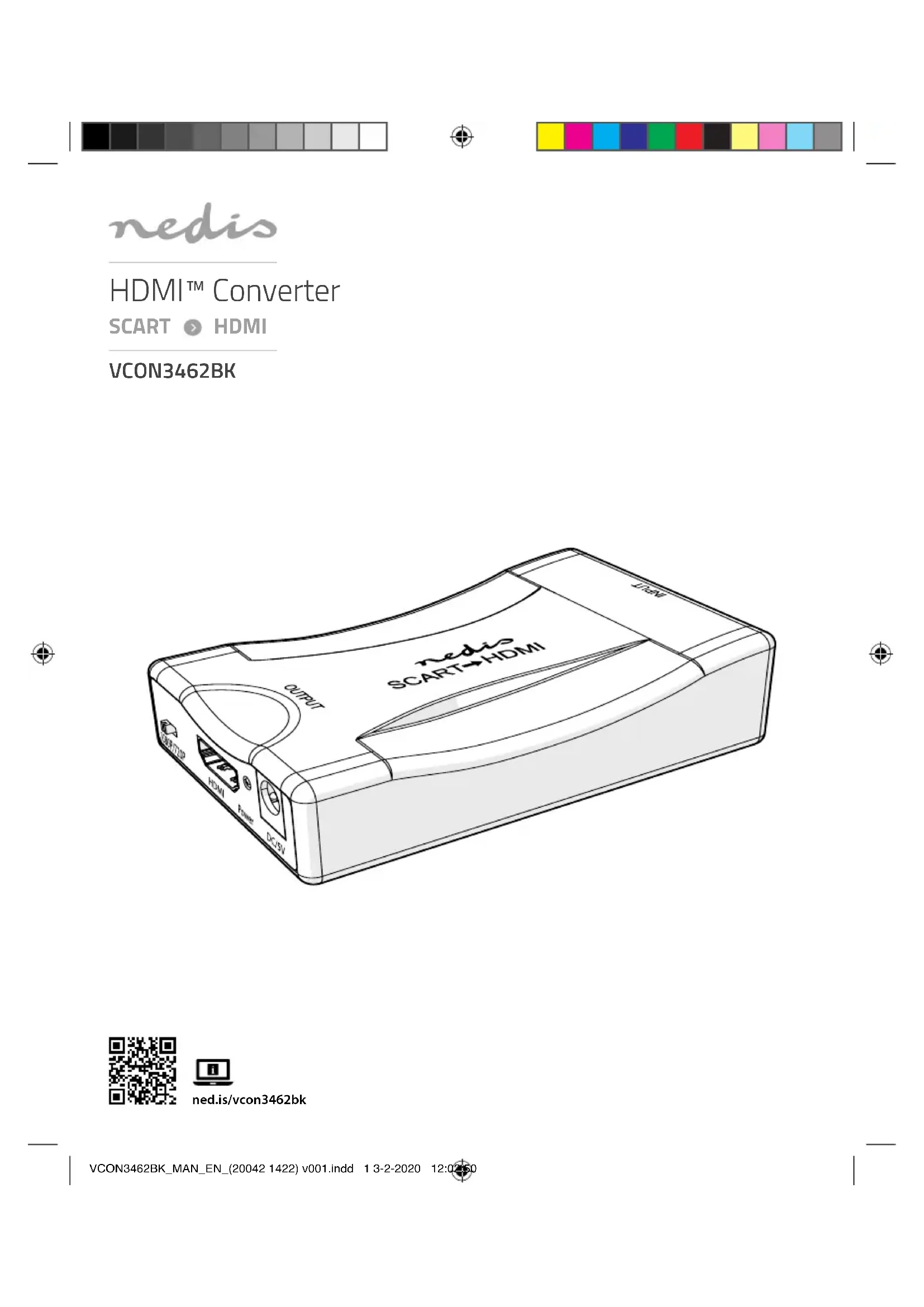 Guide de démarrage rapide Convertisseur HDMI™ VCON3462BK Pour plus d'informations, consultez le manuel détaillé en ligne : ned.is/vcon3462bk Utilisation prévue Le VCON3462BK est un convertisseur Péritel vers HDMI.Le produit est prévu pour un usage intérieur uniquement.Le produit n’est pas destiné à un usage professionnel.Toute modication du produit peut avoir des conséquences sur la sécurité, la garantie et le bon fonctionnement. Spécications Produit Convertisseur HDMI™Article numéro VCON3462BKDimensions (l x h x p) 57,5 x 25 x 88,5 mmPoids 60 gEntrée adaptateur secteur 100 - 240 VAC ; 50 / 60 HzSortie adaptateur secteur 5 VDC ; 1 ACourant de fonctionnement maxi 350 mAEntrée péritel PAL, NTSC3,58 NTSC4,43 SECAM, PAL/M, PAL/NEntrée HDMI 1080p / 720pLongueur maximale du câble de sortie HDMICâble standard HDMI AWG26 ≤ 7 mLongueur maximale du câble d'entrée PéritelCâble standard Péritel AWG26 ≤ 8 mTempérature fonctionnement -10 °C – 55 °CTempérature de stockage -20 °C – 60 °CHumidité en fonctionnement 10 - 90 % HR (sans condensation)Humidité de stockage 5 - 95 % HR (sans condensation) Pièces principales (image A)