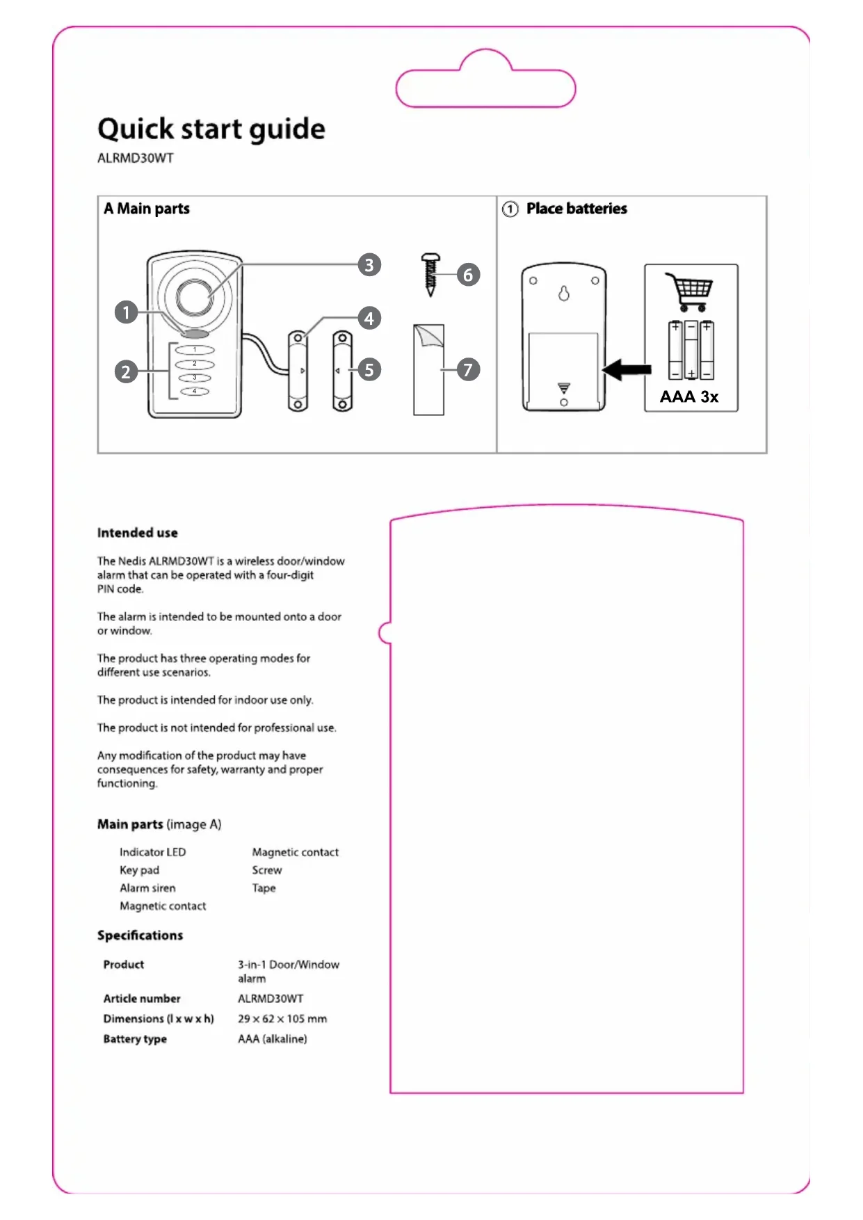 ALRMD30WT - Système d'alarme NEDIS - Notice d'utilisation et mode d'emploi gratuit