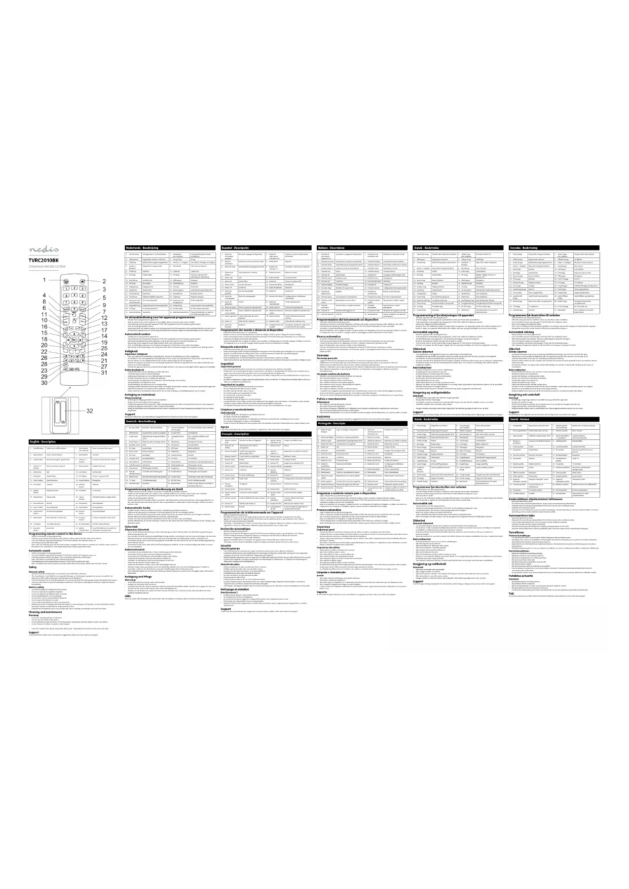 TVRC2010BK - Télécommande NEDIS - Notice d'utilisation et mode d'emploi gratuit