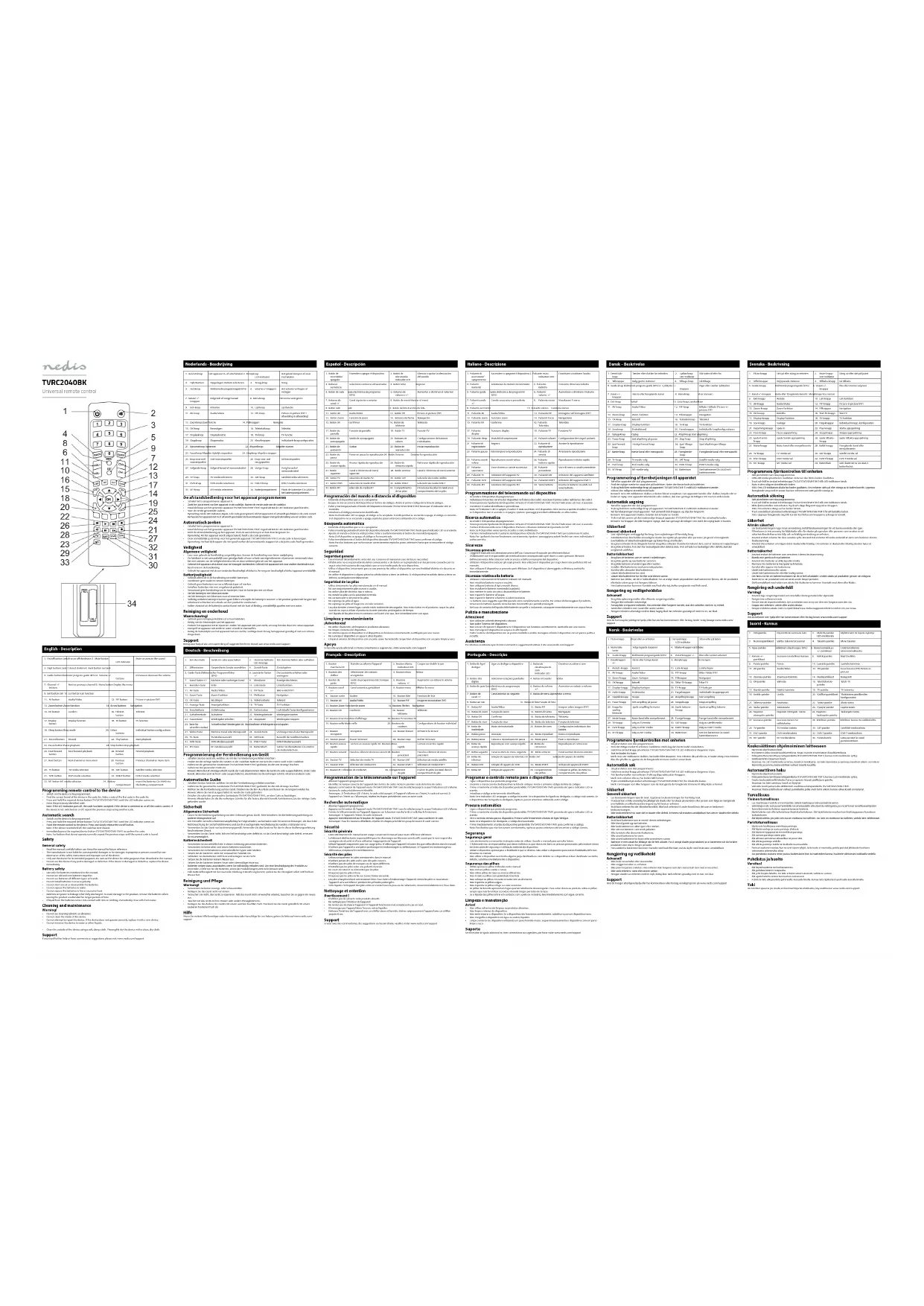 TVRC2040BK - Télécommande NEDIS - Notice d'utilisation et mode d'emploi gratuit