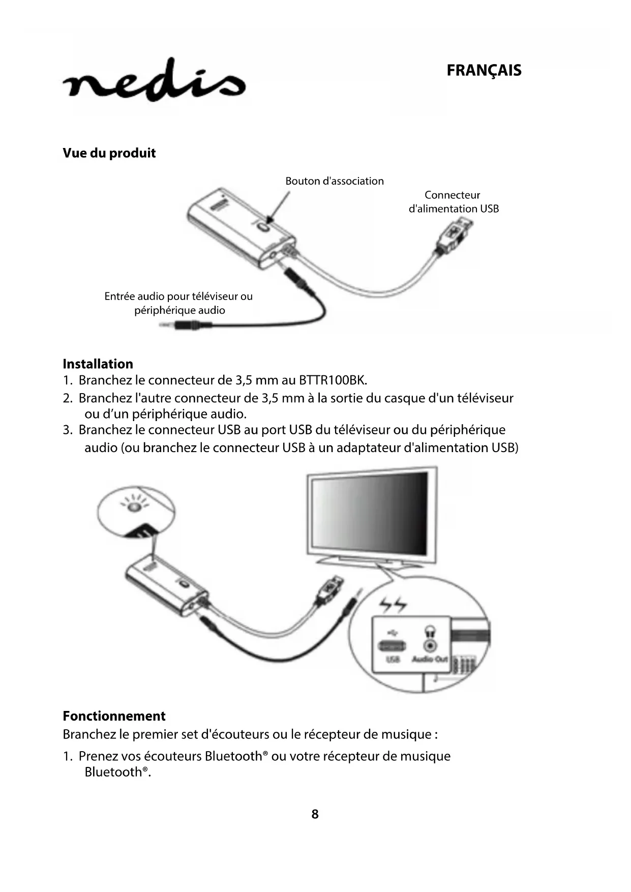 BTTR100BK - Recepteur NEDIS - Notice d'utilisation et mode d'emploi gratuit