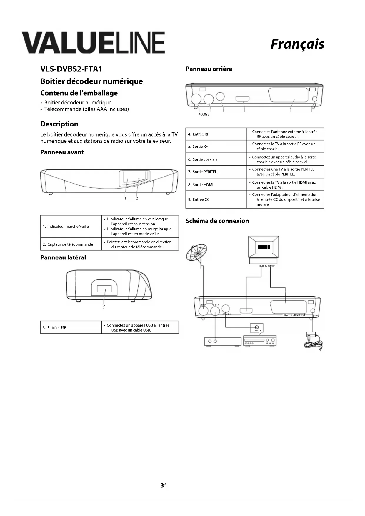 VLSDVBS2FTA1 - Recepteur Valueline - Notice d'utilisation et mode d'emploi gratuit