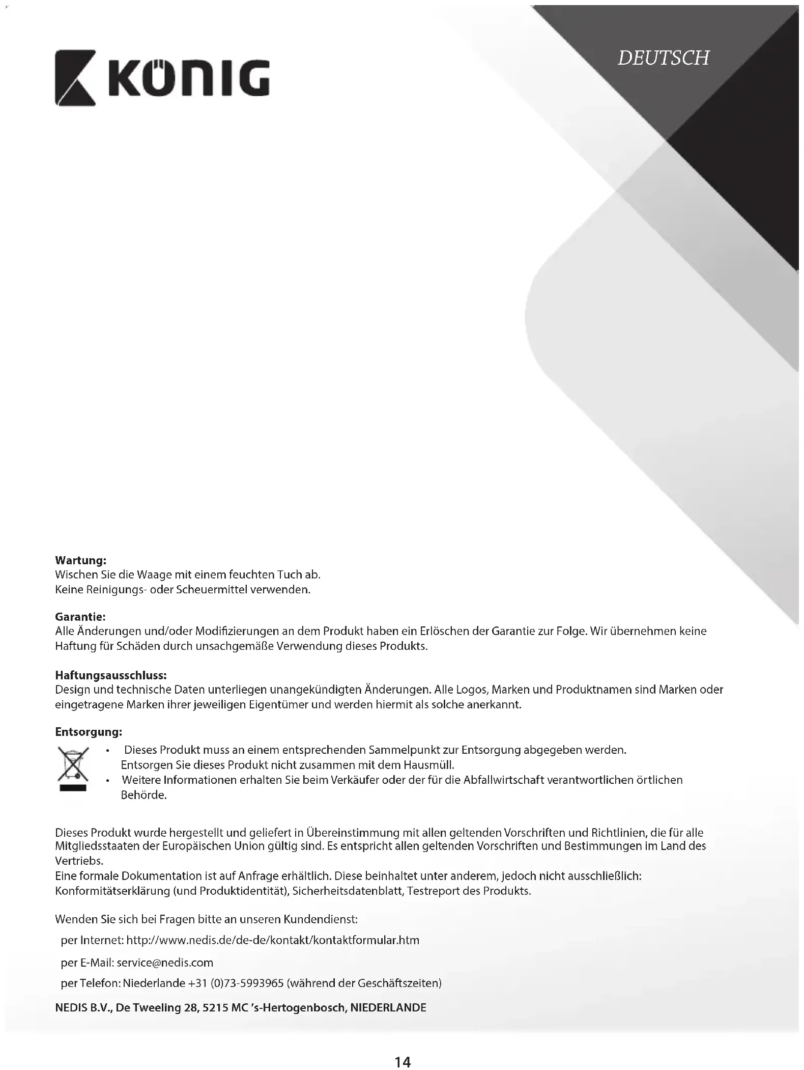 HCPS310N - Balance KONIG - Notice d'utilisation et mode d'emploi gratuit