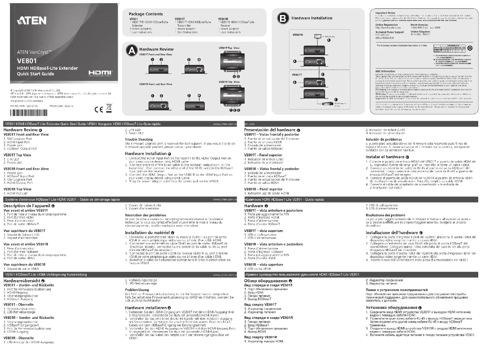 VE801T - Extension audio/video ATEN - Notice d'utilisation et mode d'emploi gratuit