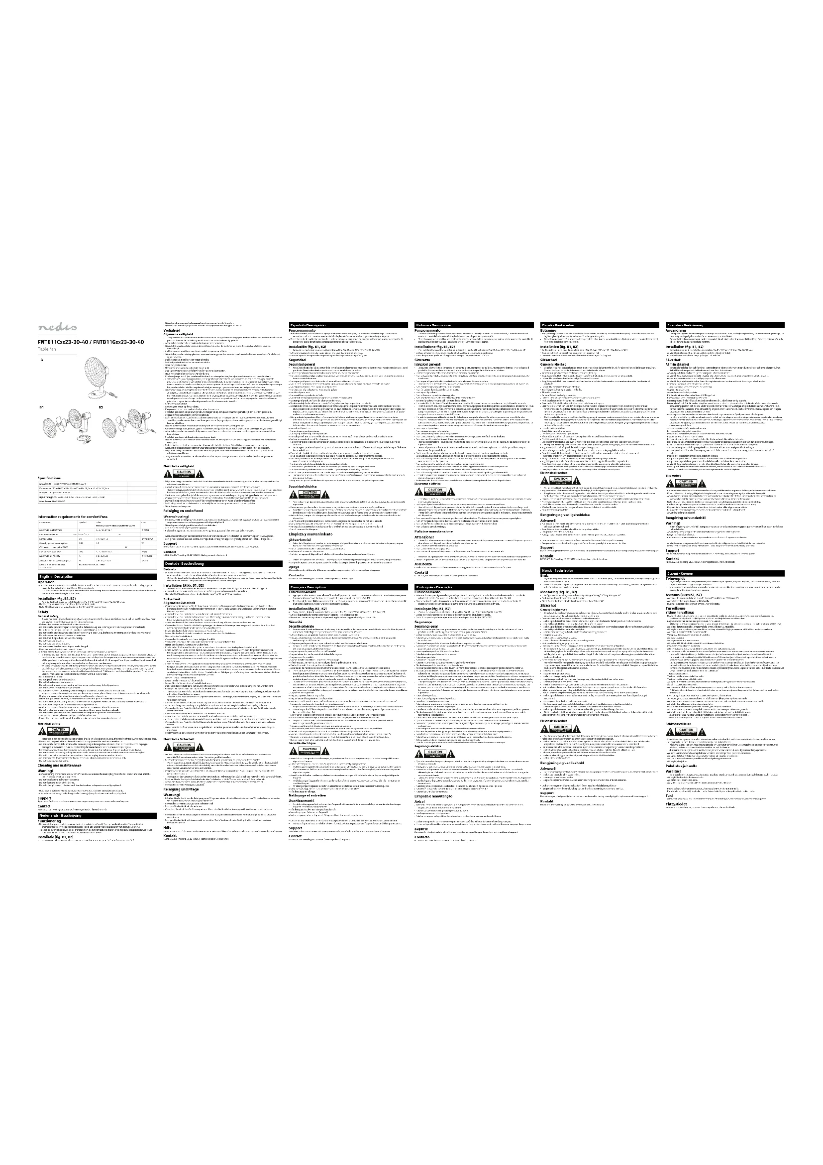 FNTB11CWT30 - Ventilateur NEDIS - Notice d'utilisation et mode d'emploi gratuit