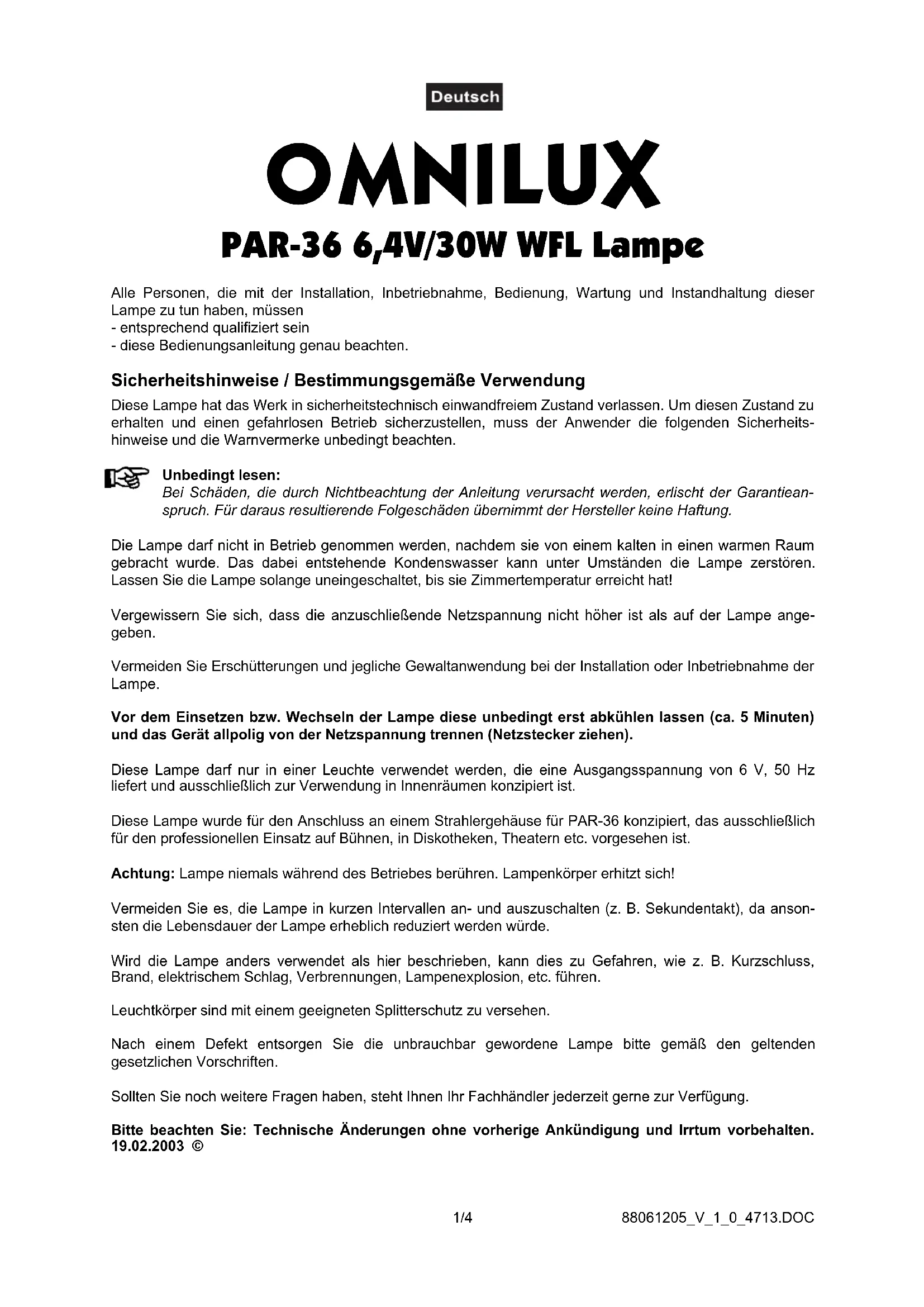 Retrouvez gratuitement la notice de l'appareil PAR36 Omnilux au format PDF.
