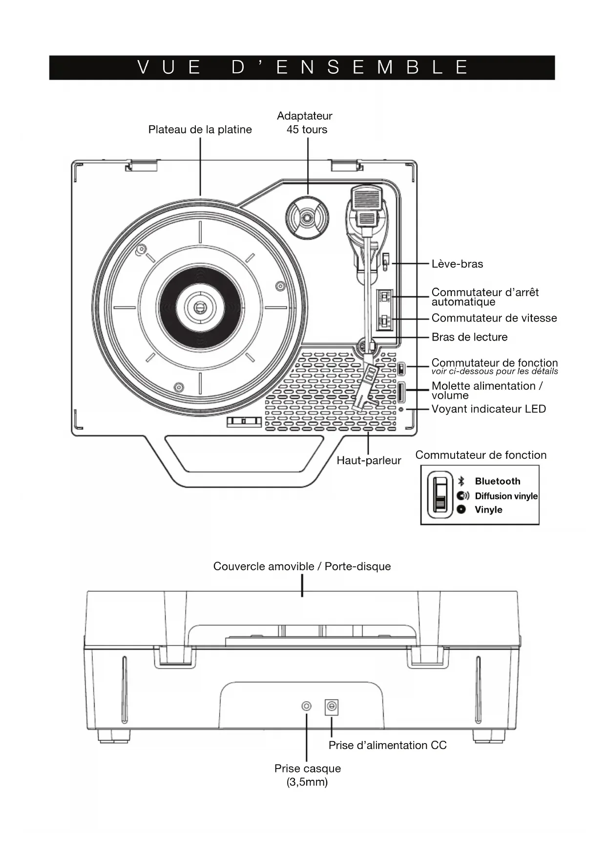 MANUEL D'INSTRUCTIONSCommutateur de fonction Bluetooth Diffusion vinyle Vinyle