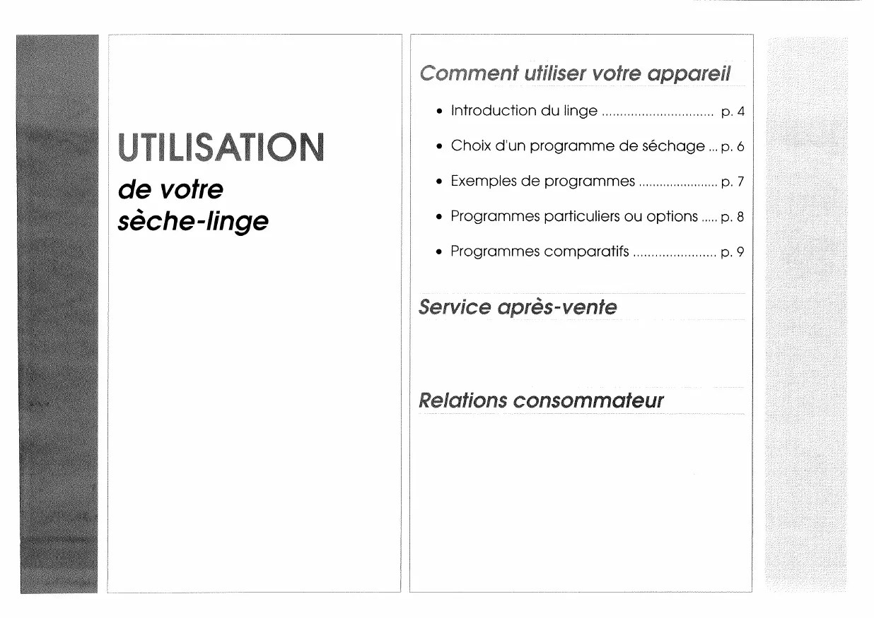 Tournez la page et faites connaissance avec vous seche-linge pour l'utiliser au moins de ses possibilités.
