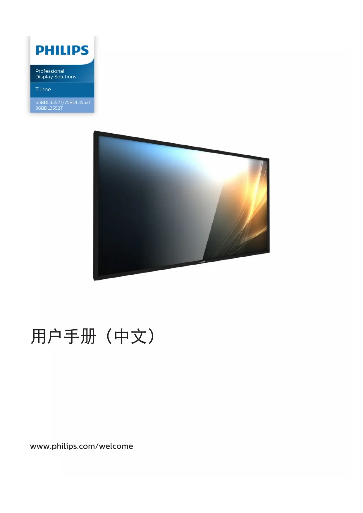 此设备符合针对非受控环境而规定的 ISED 辐射暴露限制。此设备在安装和运行时,应确保辐射器和身体之间至少相距 20cm。 Déclaration d’exposition aux radiations:Cet équipement est conforme aux limites d’exposition aux rayonnements ISED établies pour un environnement non contrôlé.Cet équipement doit être installé et utilisé avec un minimum de 20 cm de distance entre la source de rayonnement et votre corps.65BDL3552T/75BDL3552T/86BDL3552T