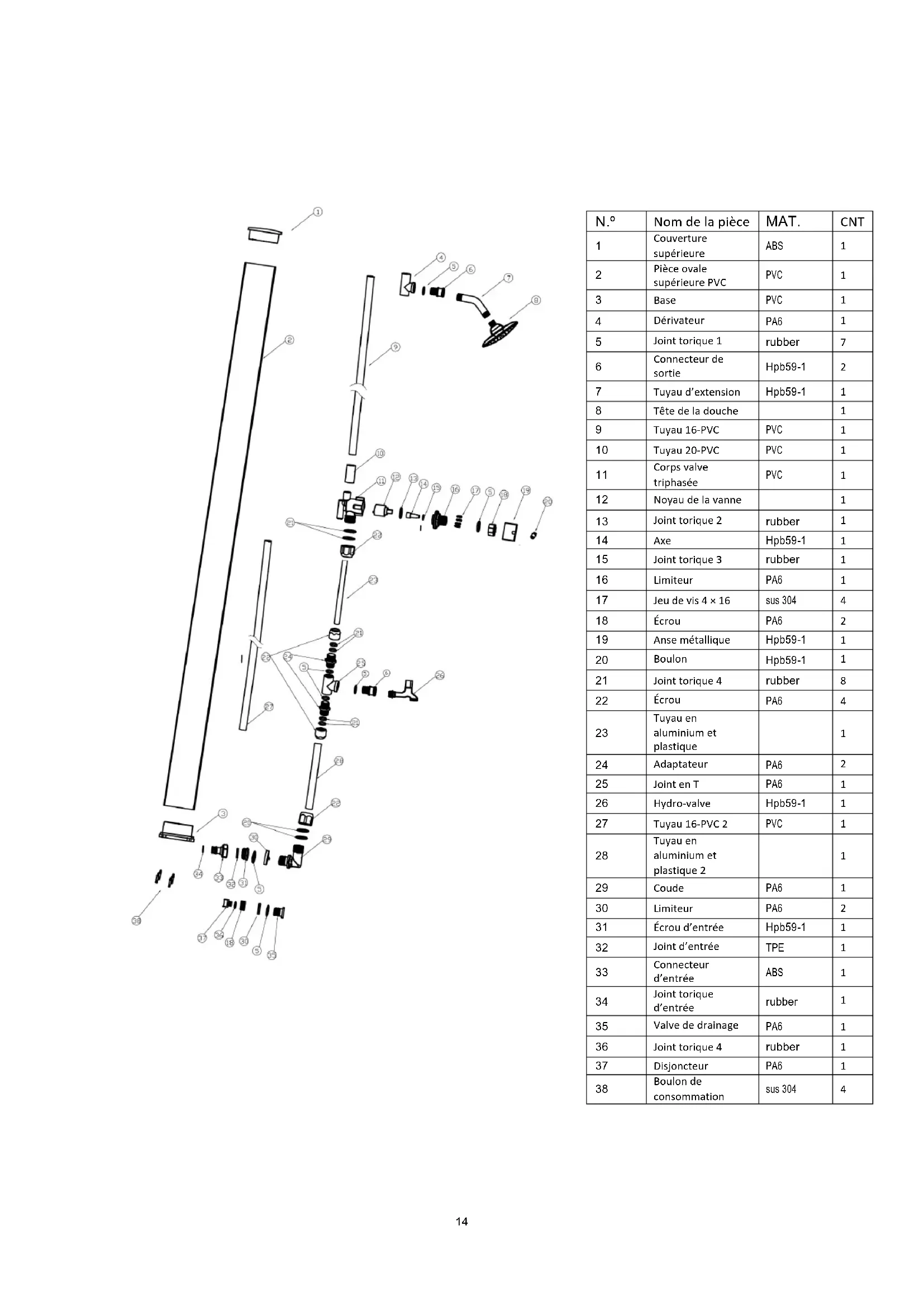 - Rangez la douche solaire dans un lieu sec, éloigné de la lumière solaire et protégé contre le gel. IMPORTANT