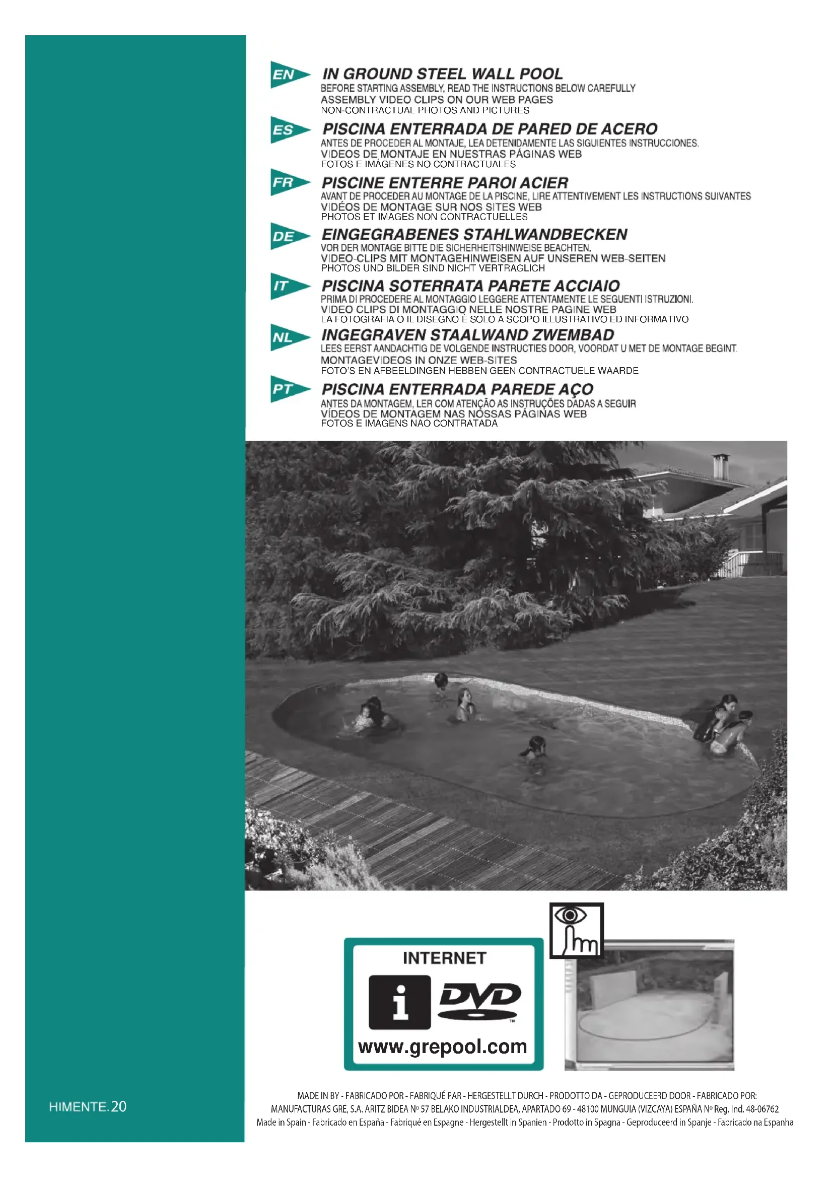 - Dommages provoqués par une mauvaise manipulation ou un montage non conforme. IMPORTANT : La société Manufacturas Gre eectue des échanges de composants contre reprise pour expertise. Si , après expertise, aucune anomalie ou dysfonctionnement n’est avéré, la société Manufac- turas Gre se réserve le droit de facturer les frais de port et autres frais divers au client. DURÉE DE LA GARANTIE : Les piscines Gre sont soumises à la garantie légale établie par la loi générale concernant la protection des consommateurs et utilisateurs, c’est-à-dire 2 années depuis la date d’achat et d’après les conditions de cette dernière. Nous vous rappelons que pour que la garantie soit applicable, il est nécessaire de présenter le document certiant l’achat et/ou la livraison du produit. Manufacturas Gre fournit par ailleurs une garantie commerciale de 2 années supplémentai- res pour ce modèle de piscine, ce qui représente un total de 4 années, uniquement en ce qui concerne les pièces métalliques de la structure de la piscine. Cette garantie commerciale supplémentaire n’a aucun eet sur les droits du consommateur par rapport à la garantie légale. Les éléments exclus des deux garanties sont les suivants :