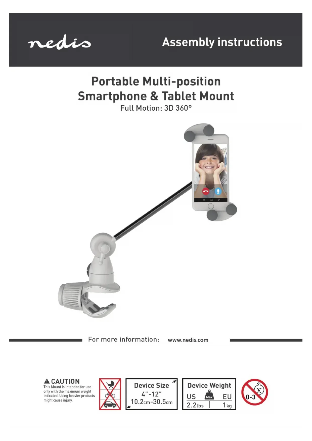 ATTENTION! Négliger les instructions de sécurité et d'assemblage peut entraîner des dommages ou la chute de vos appareils électriques. L'ouverture de cette boîte suppose que vous vous engagez à lire attentivement les instructions avant toute installation. Ce support n'est pas destiné à être utilisé dans les lieux publics. Consignes de sécurité, garantie et informations complémentaires sur le lien suivant: www.nedis.com. com › Support › Safety Instructions & Warranty