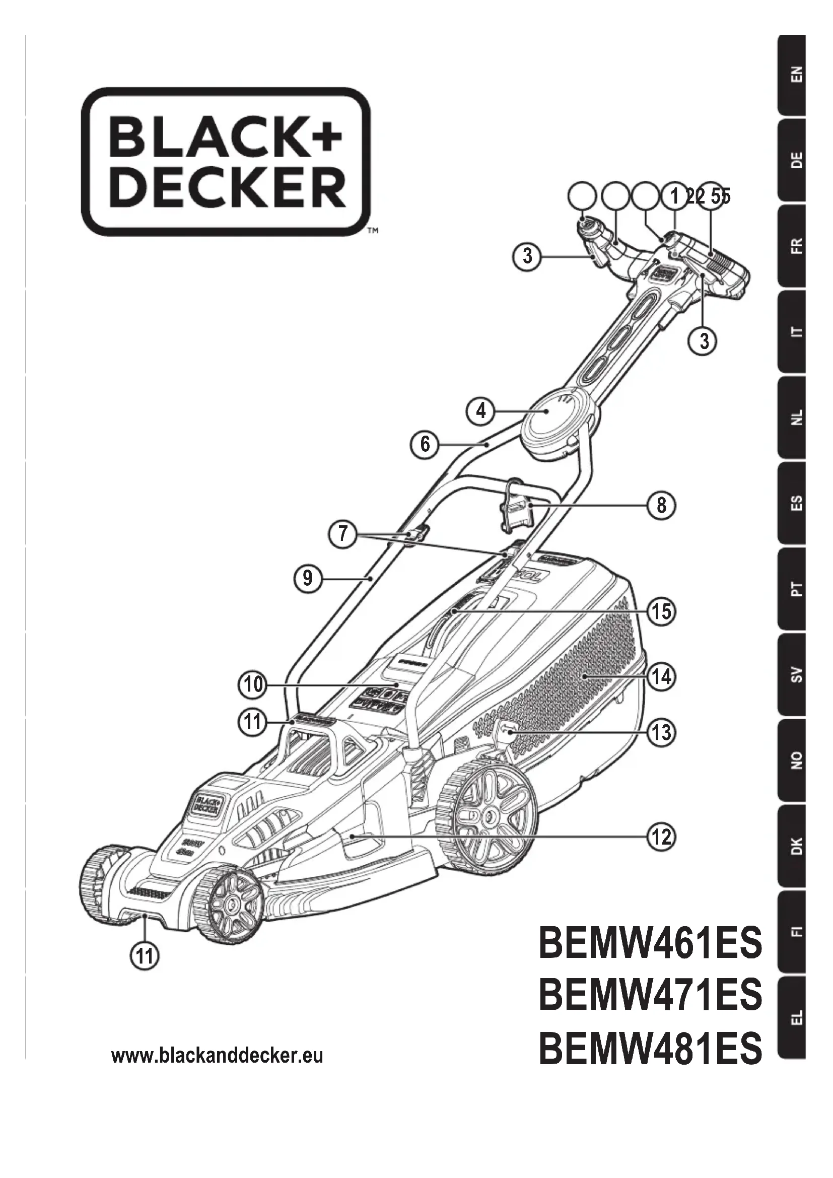 BEMW461ES - Tondeuse à gazon BLACK & DECKER - Notice d'utilisation et mode d'emploi gratuit