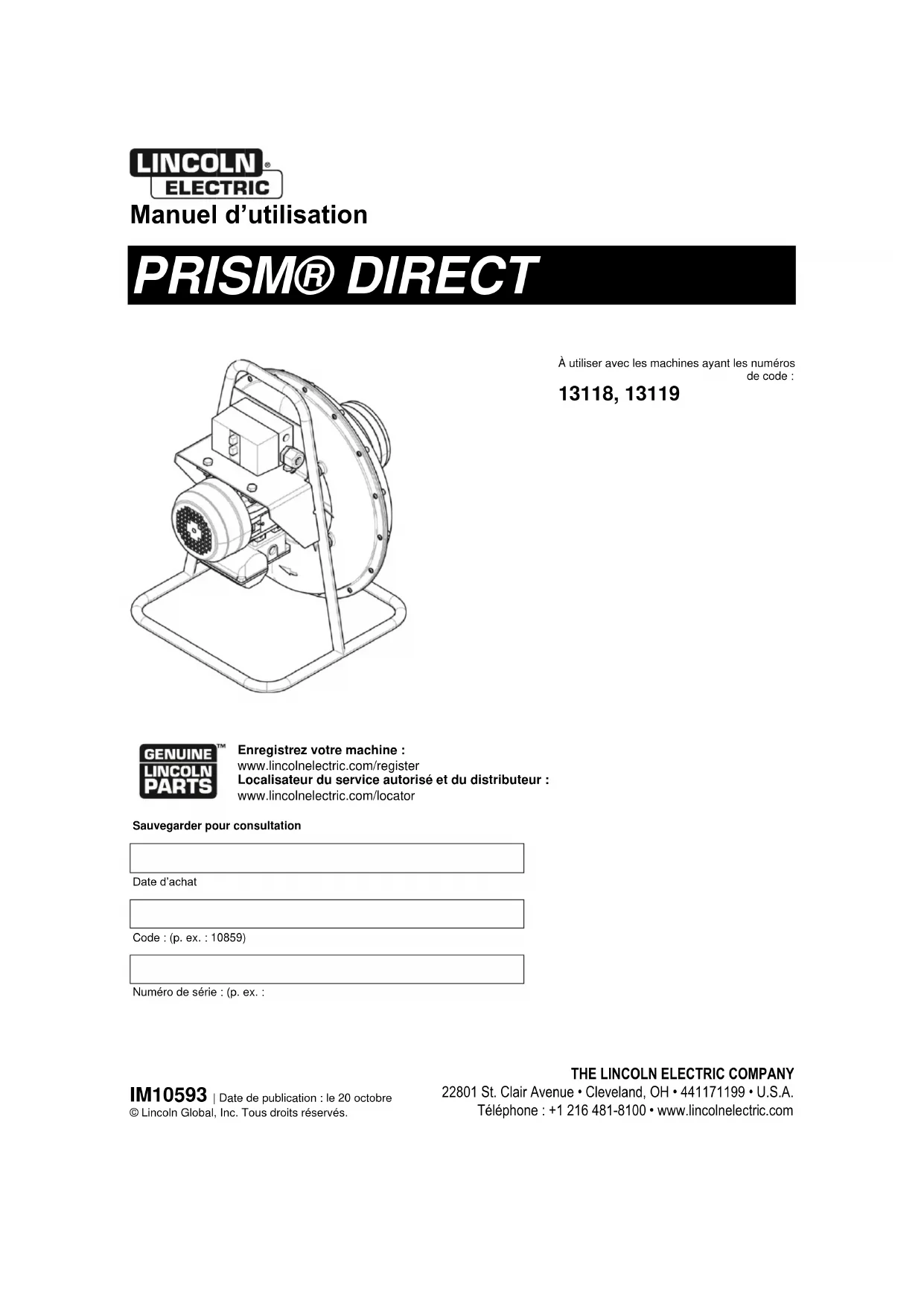 Retrouvez gratuitement la notice de l'appareil Prism Direct LINCOLN ELECTRIC au format PDF.