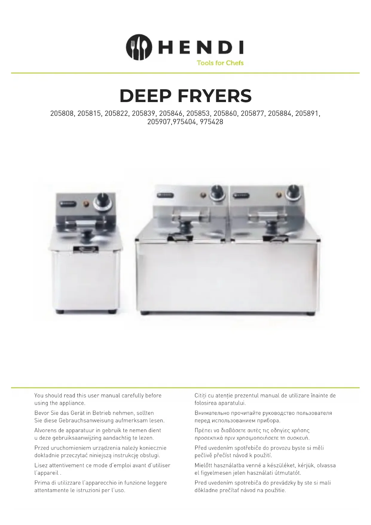 Téléchargez la notice de votre Friteuse au format PDF gratuitement ! Retrouvez votre notice 205808 - Hendi et reprennez votre appareil électronique en main. Sur cette page sont publiés tous les documents nécessaires à l'utilisation de votre appareil 205808 de la marque Hendi.