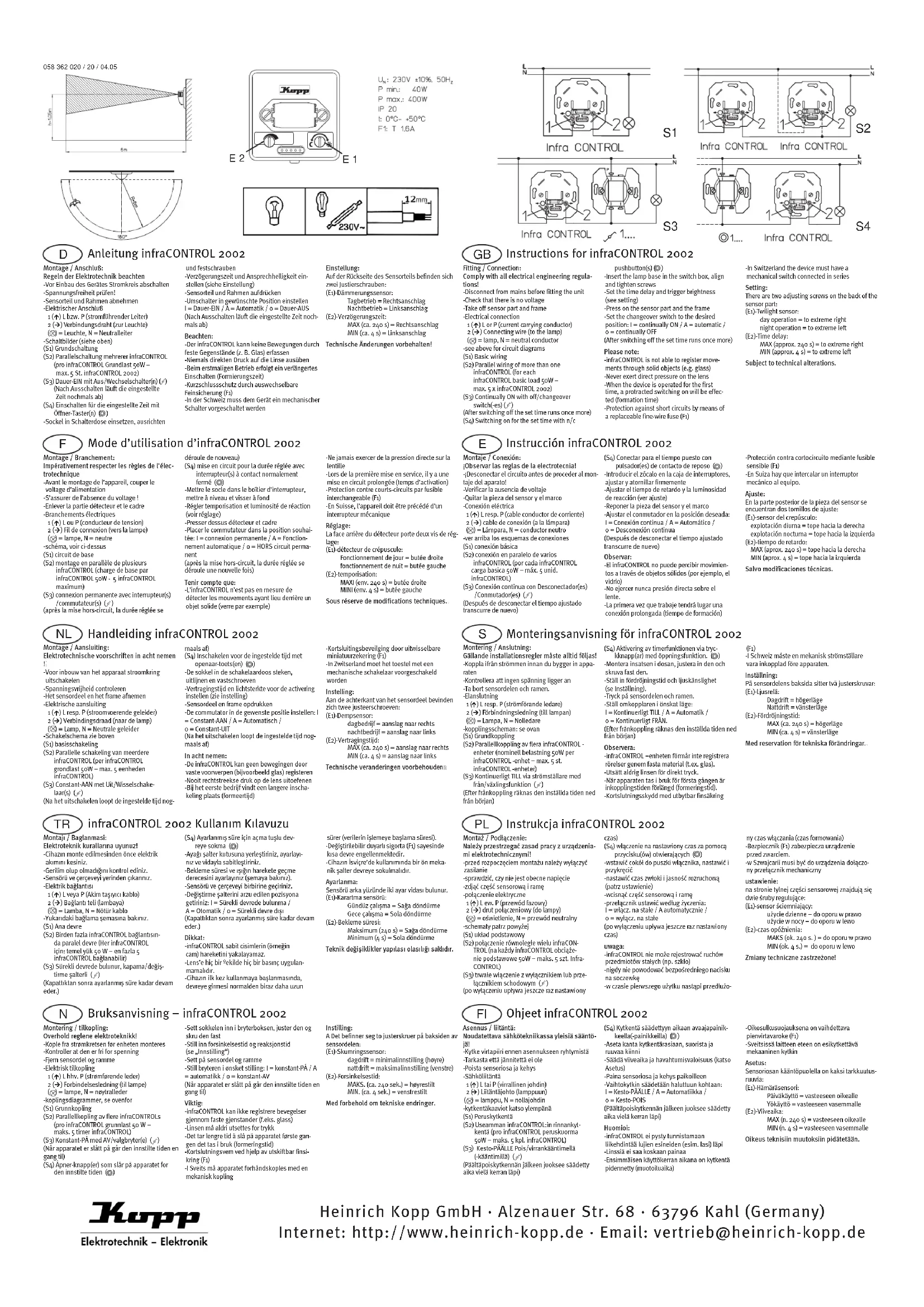 InfraCONTROL 2002 - Commutateur Kopp - Notice d'utilisation et mode d'emploi gratuit