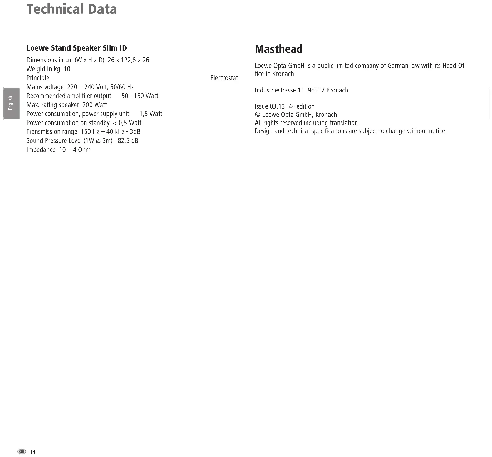 Retrouvez gratuitement la notice de l'appareil Stand Speaker Slim ID LOEWE au format PDF.