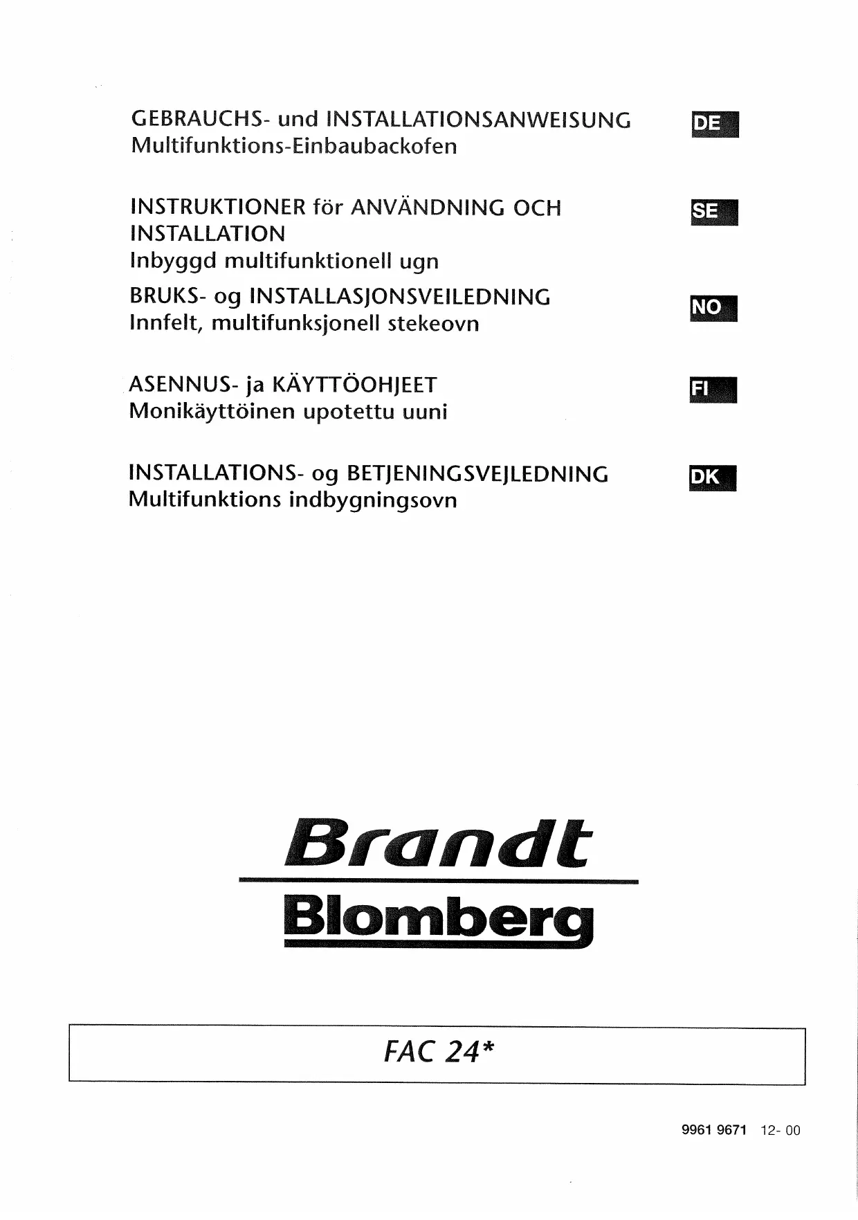 FOIRE AUX QUESTIONS - FAC24X1N BRANDT