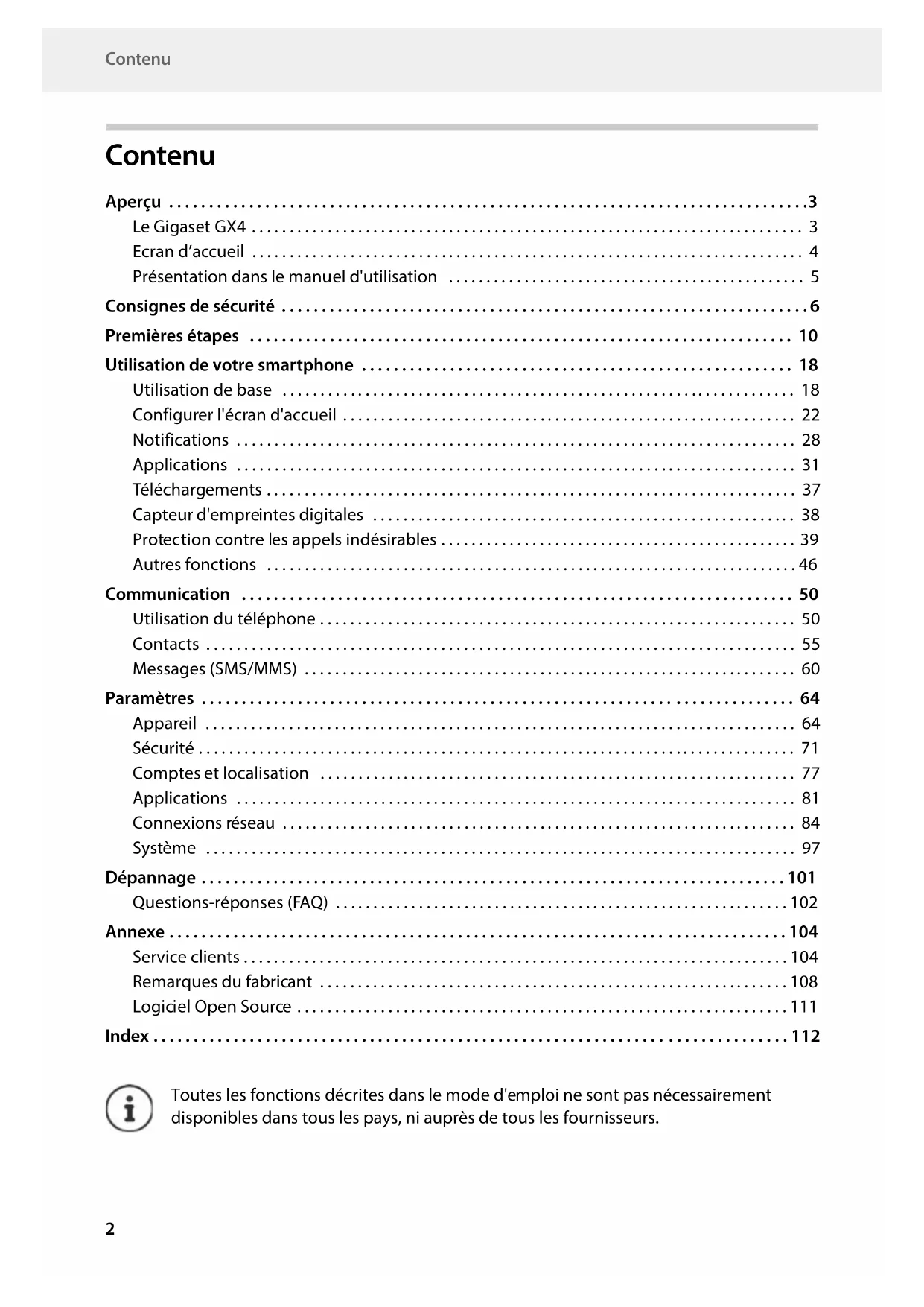 Toutes les fonctions décrites dans le mode d'e mploi ne sont pas nécessairement disponibles dans tous les pays, ni auprès de tous les fournisseurs.Gigaset GX4 / LUG FR fr / A31008-XXXXX-XXXX-X-XXXX / overview.fm / 1/18/23 Template Module, Version 2.1, 11.08.2020 / Template Basiseinstellungen: Version 3.1 - 07.07.2020 Le Gigaset GX4