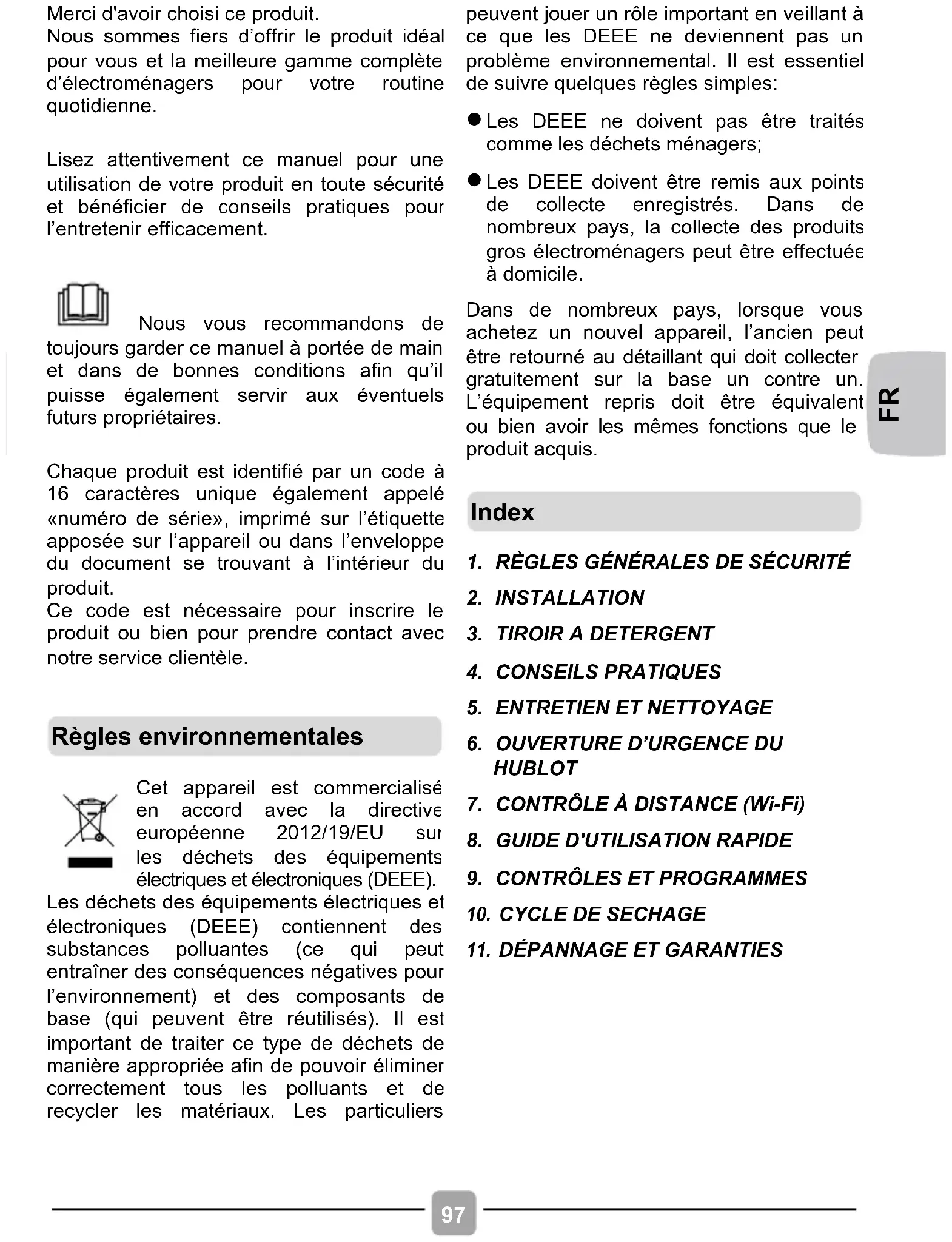 Les DEEE doivent être remis aux points de collecte enregistrés. Dans de nombreux pays, la collecte des produits gros électroménagers peut être effectuée à domicile.